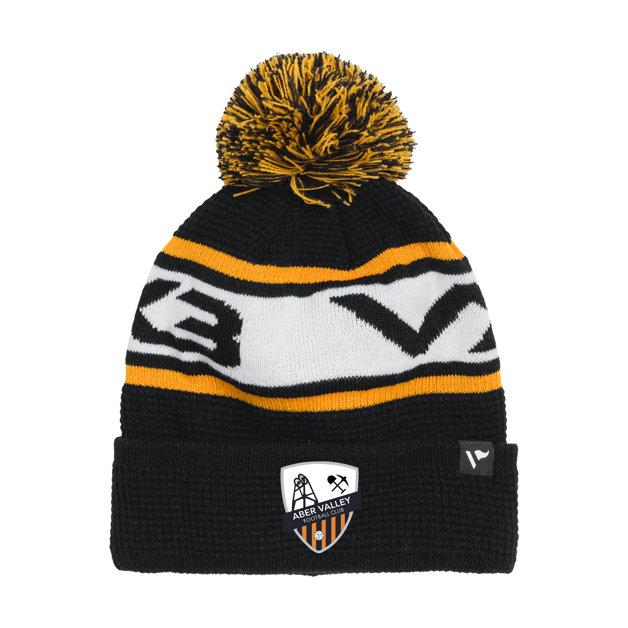 Aber Valley FC Waffle Knit Bobble Hat - Black/Amber/White