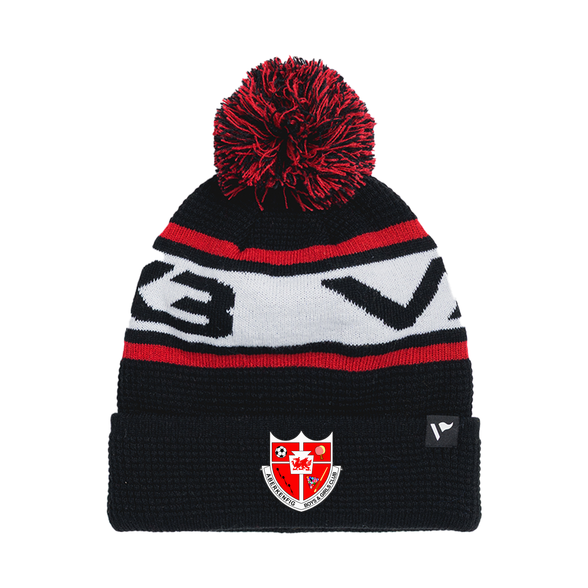 Aberkenfig BGC Waffle Knit Bobble Hat - Black/Red/White