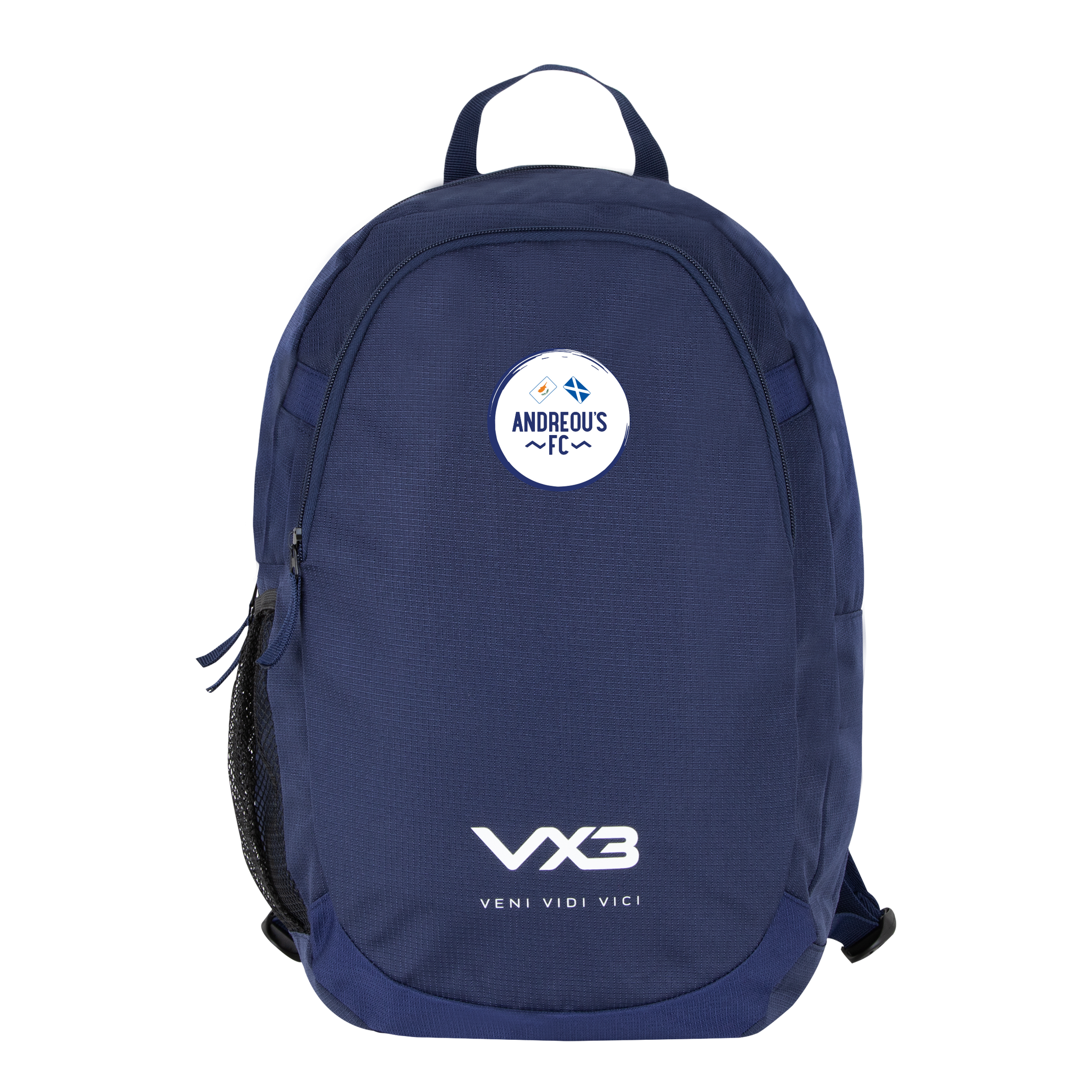 The VX3 logo is printed on the large front pocket at the bottom of the backpack with the slogan 'Veni, Vidi, Vici' underneath. Store your essentials in confidence and keep them safe and dry with the VX3 Performance Backpack, essential for any active person always on the go