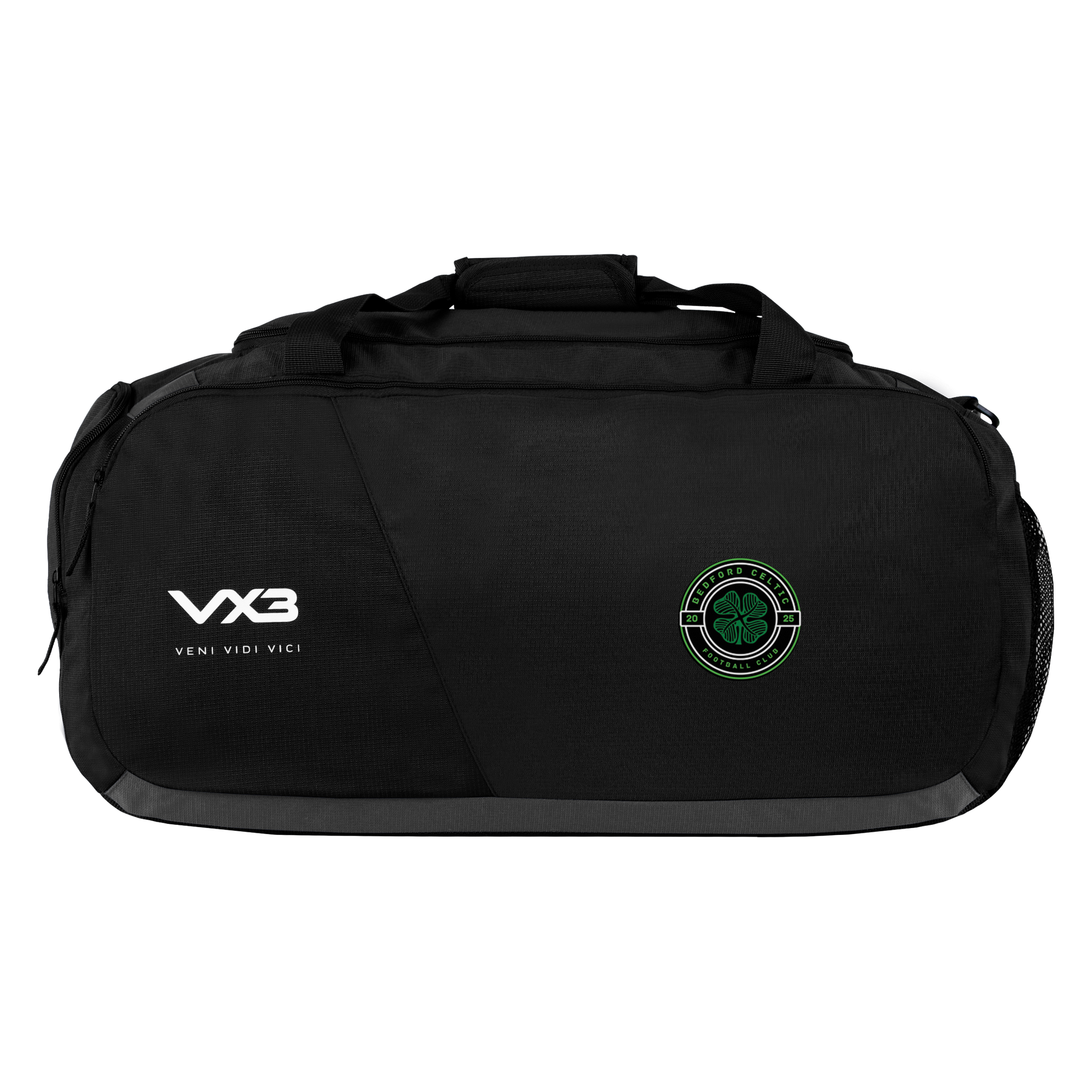 This bag is black and has been finished with the VX3 logo printed on the front pocket in white with the slogan "veni, vidi, vici" underneath.