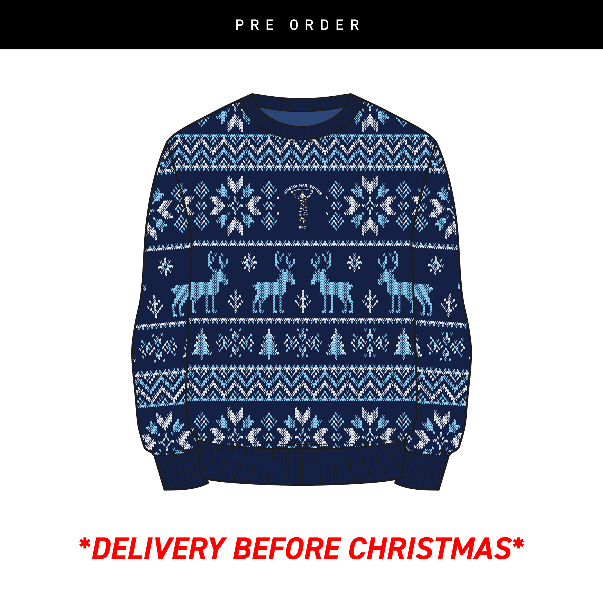 Bristol Harlequins RFC Christmas Jumper - Navy/Sky/White
