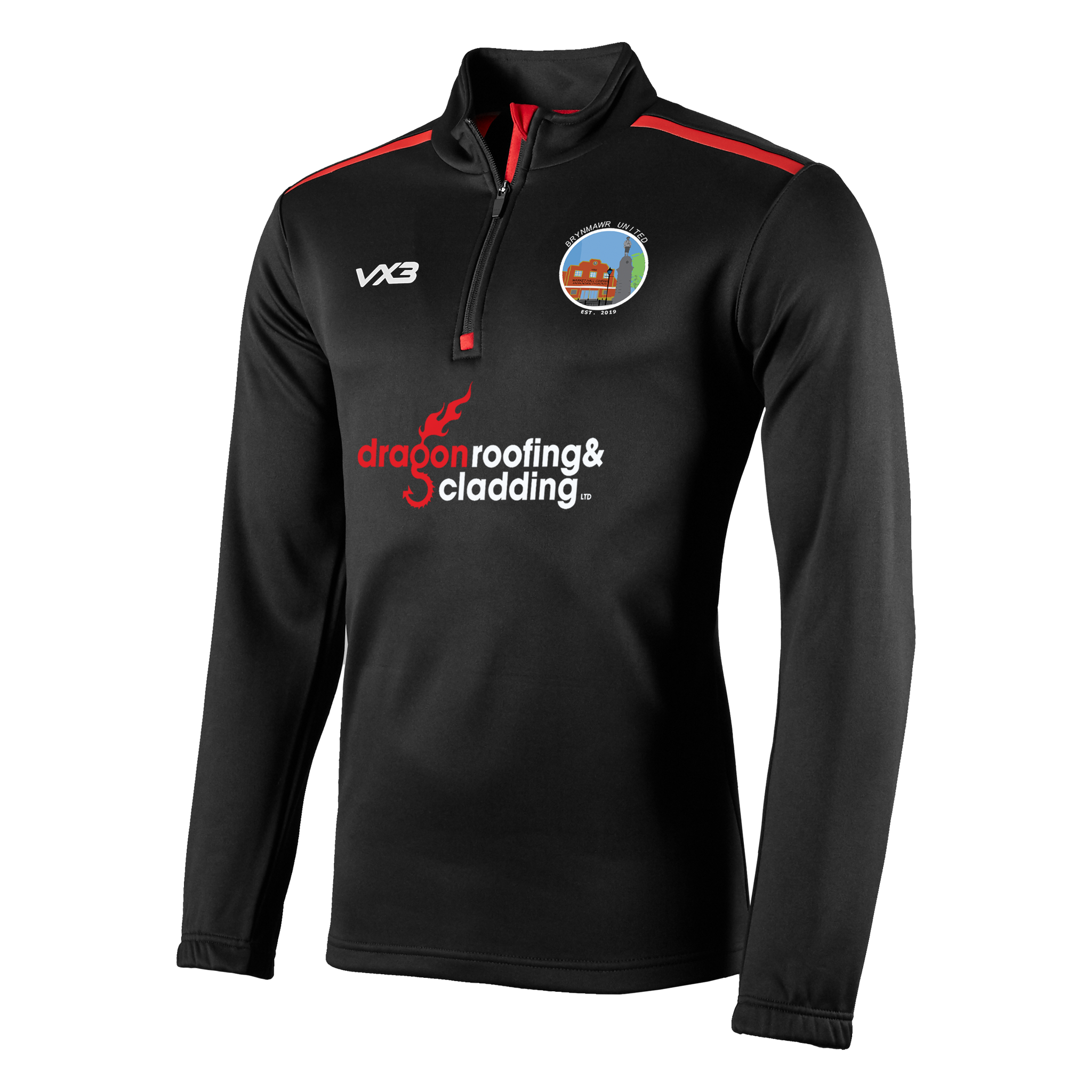 Brynmawr United FC Black/Red Fortis Youth Quarter Zip Sweat