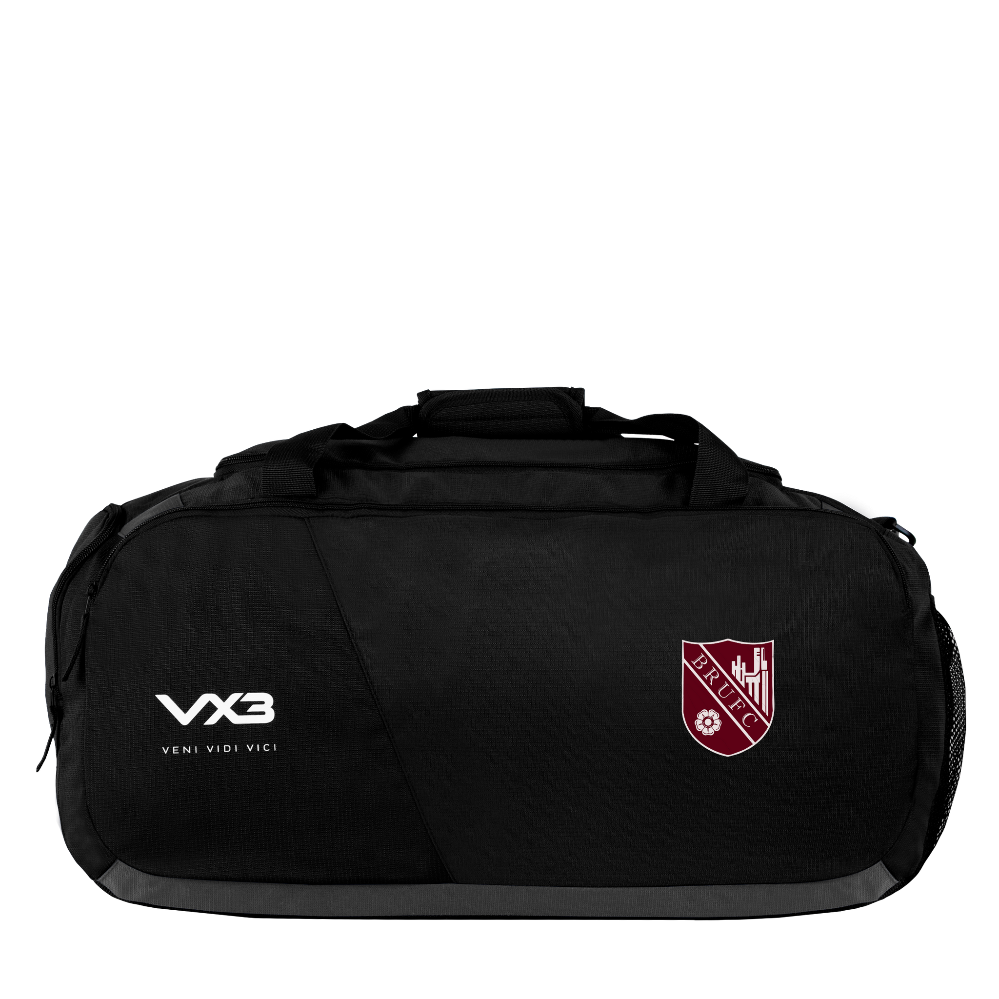This bag is black and has been finished with the VX3 logo printed on the front pocket in white with the slogan "veni, vidi, vici" underneath.