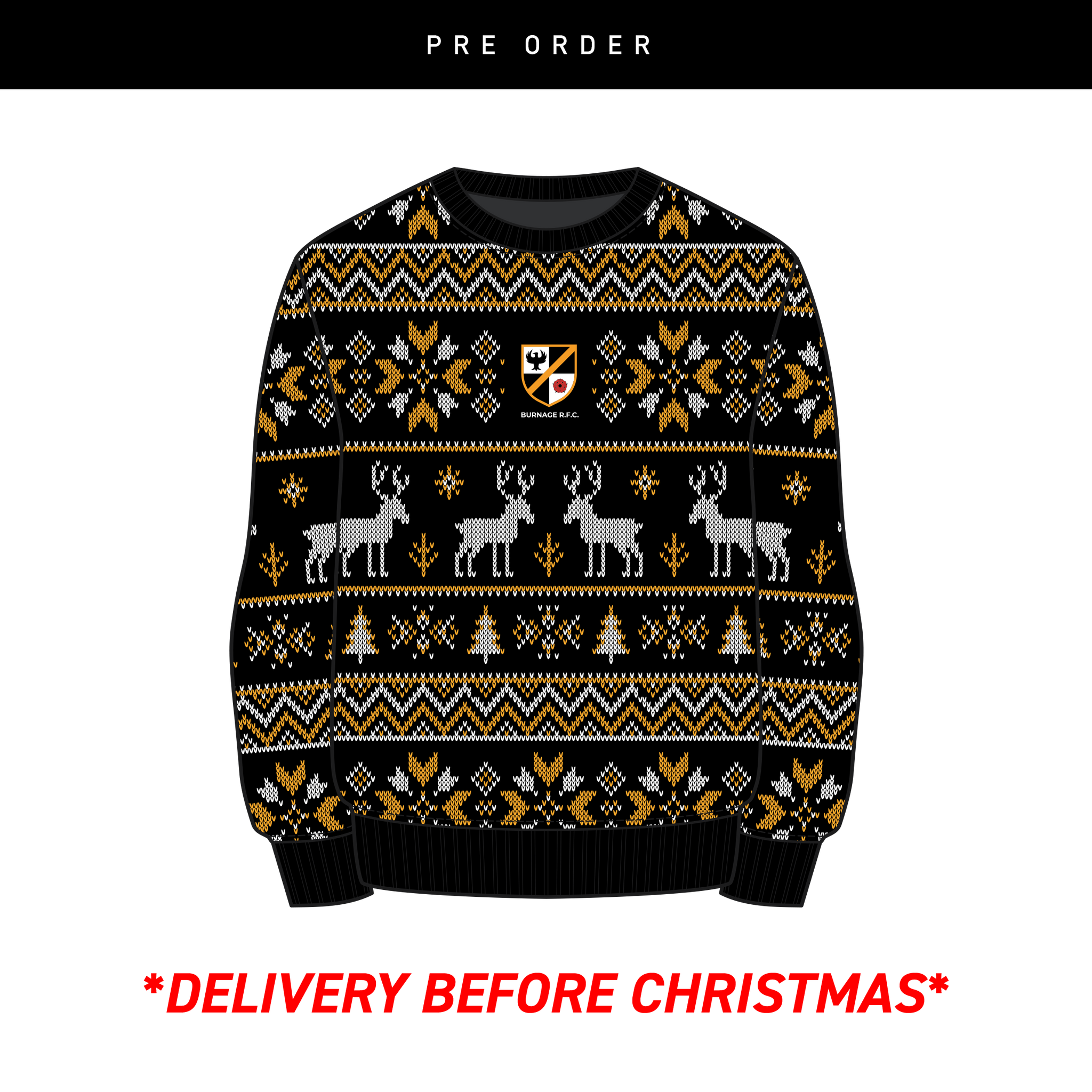 Burnage RFC Christmas Jumper - Black/Amber/White Youth