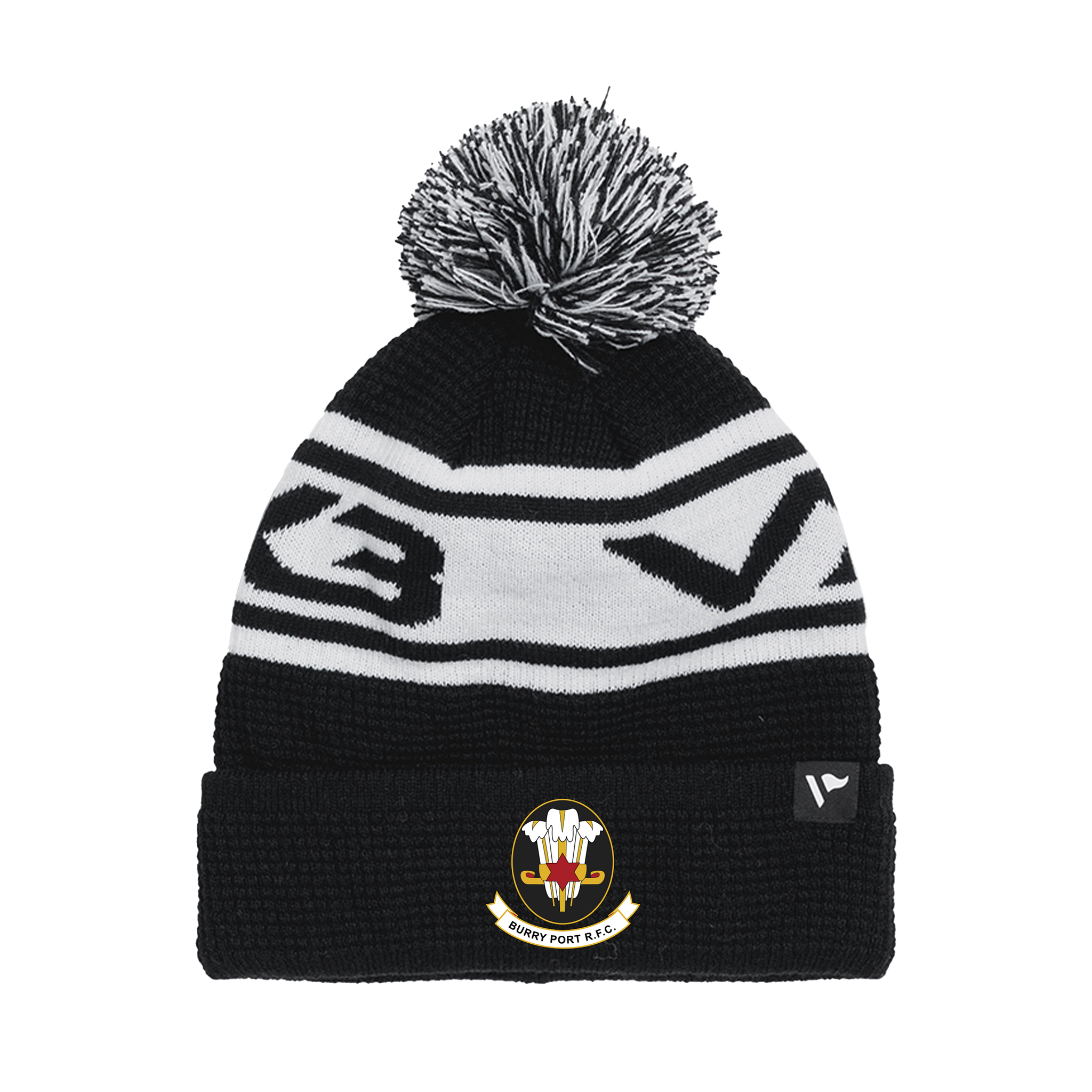 Burry Port RFC Waffle Knit Bobble Hat - Black/White