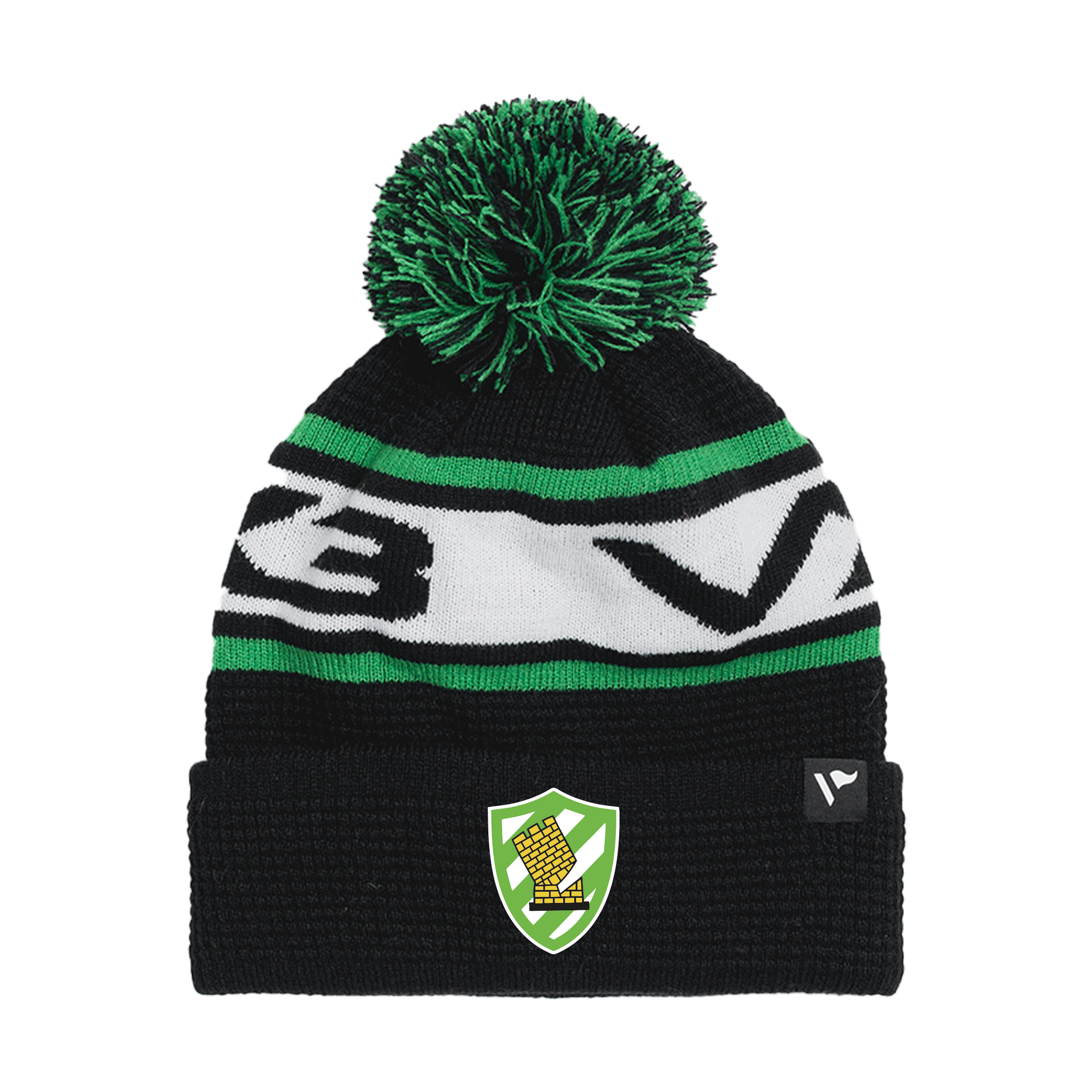 Caerphilly RFC Waffle Knit Bobble Hat - Black/Emerald/White