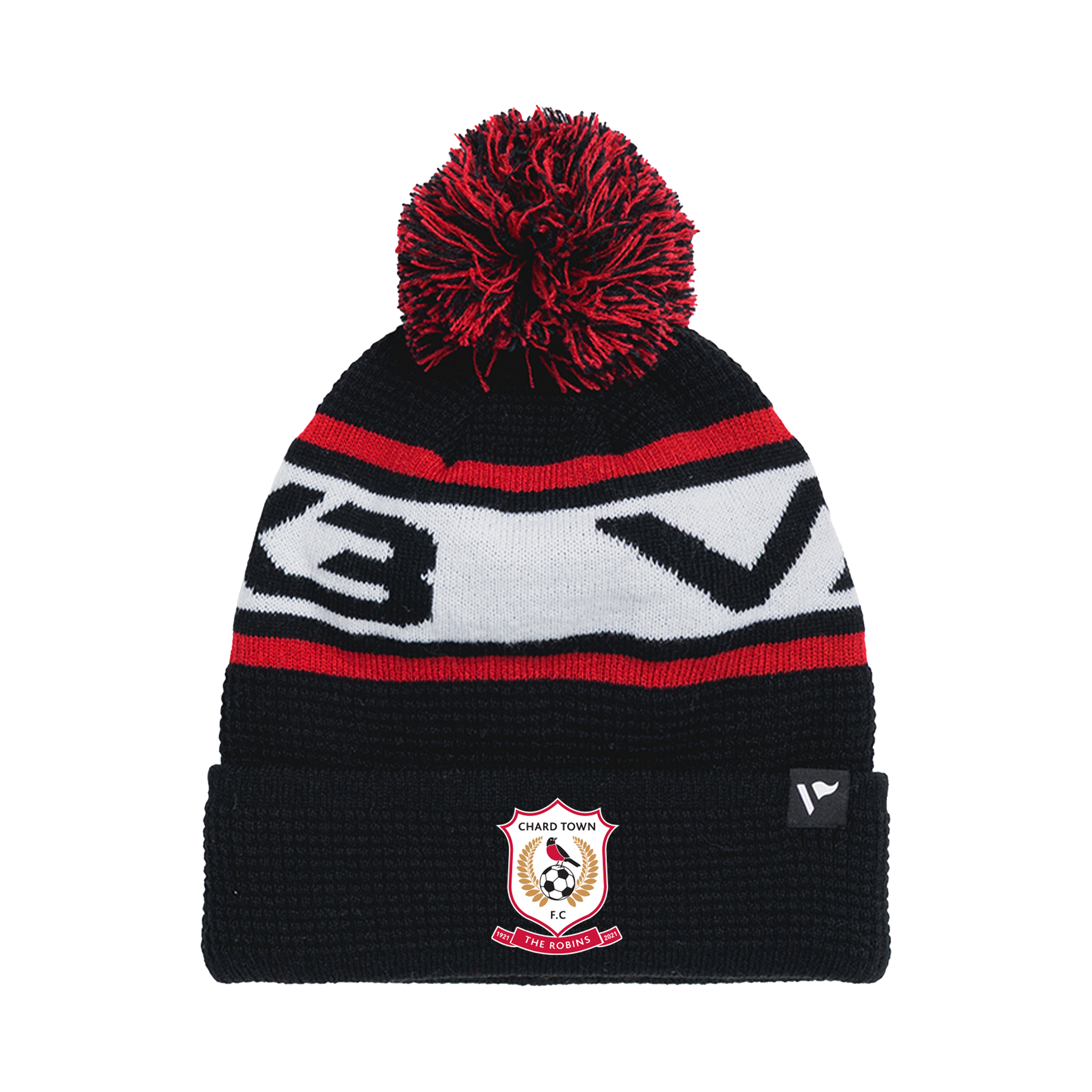 Chard Town FC Waffle Knit Bobble Hat - Black/Red/White