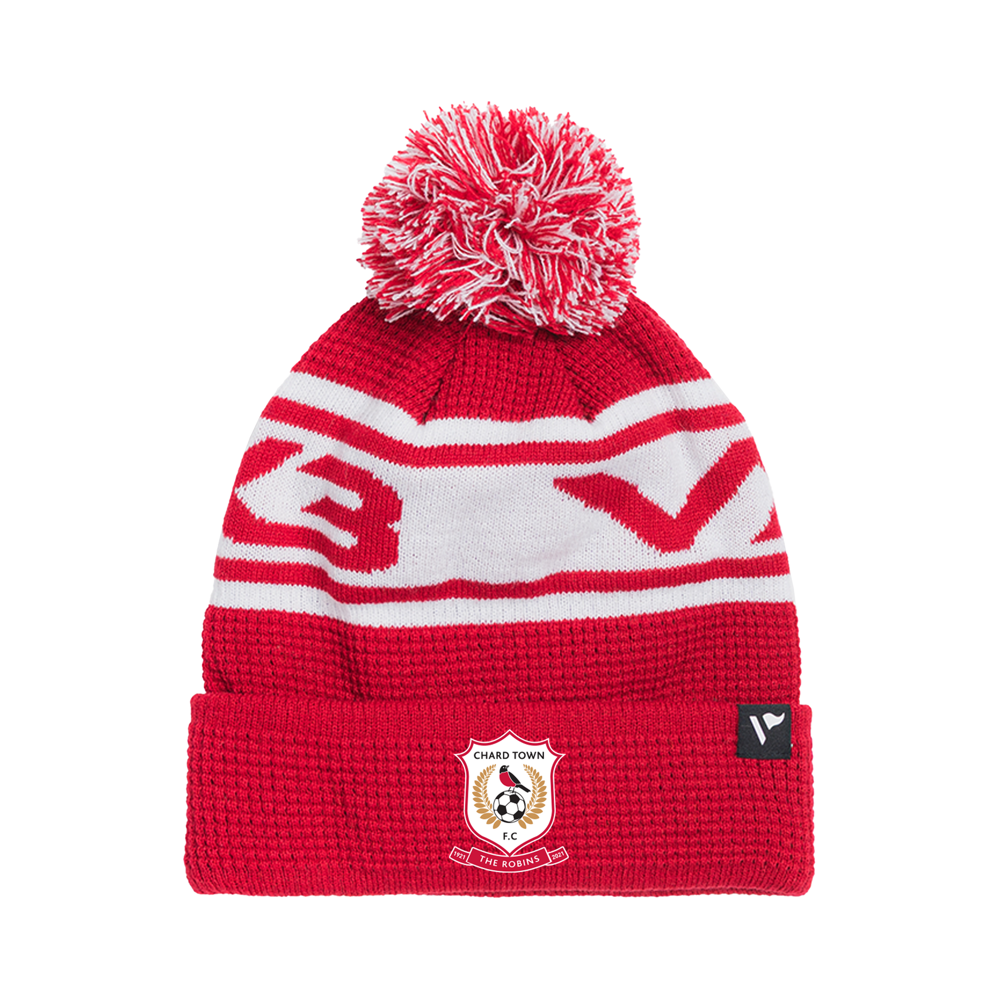Chard Town FC Waffle Knit Bobble Hat - Red/White