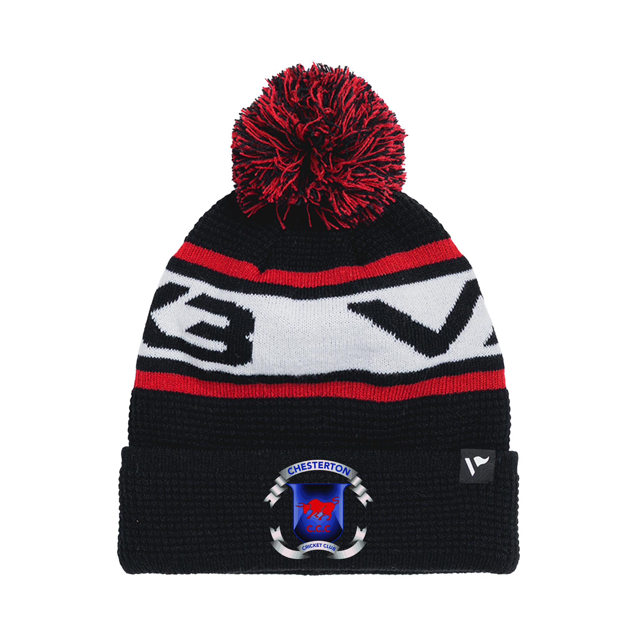 Chesterton and Wendlebury Cricket Club Waffle Knit Bobble Hat - Black/Red/White