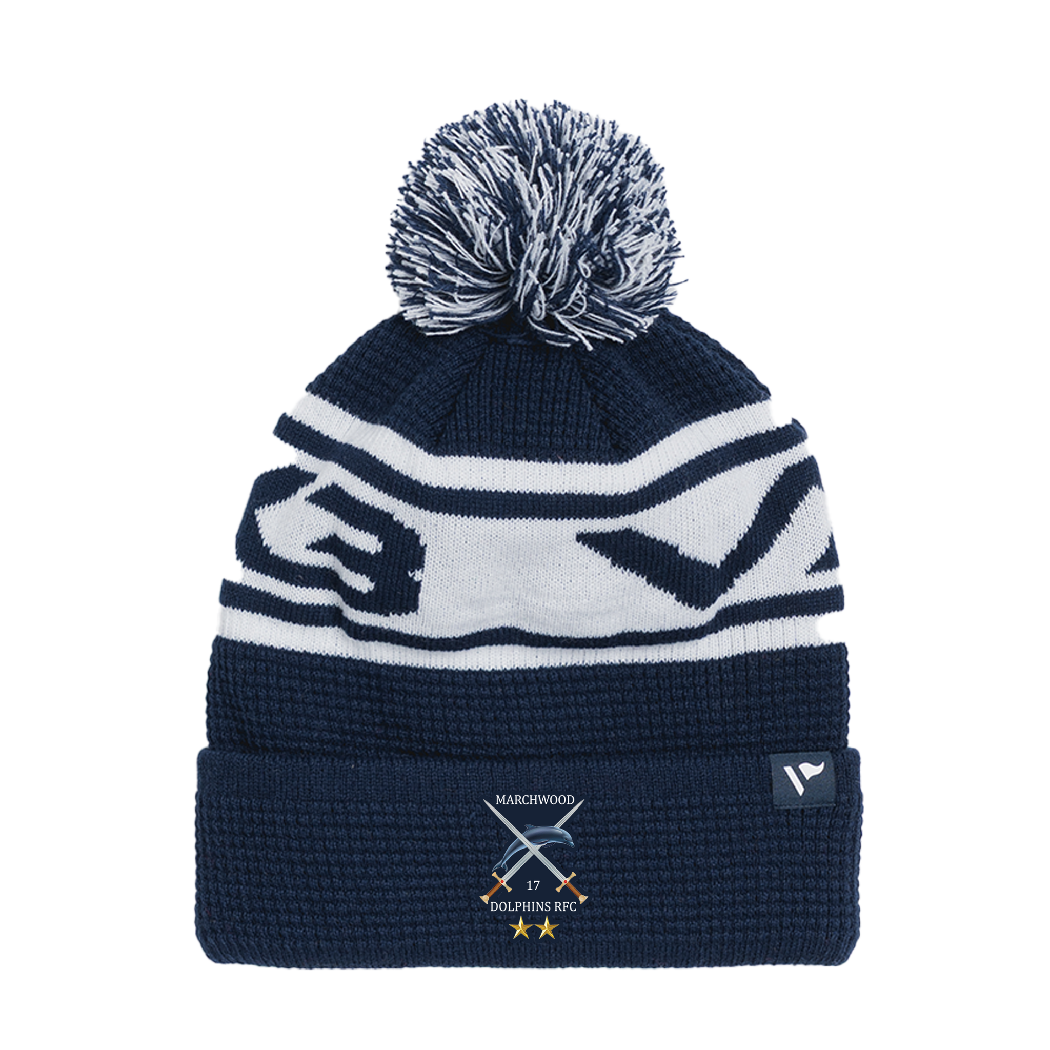 Marchwood Dolphins RFC Waffle Knit Bobble Hat - Navy/White