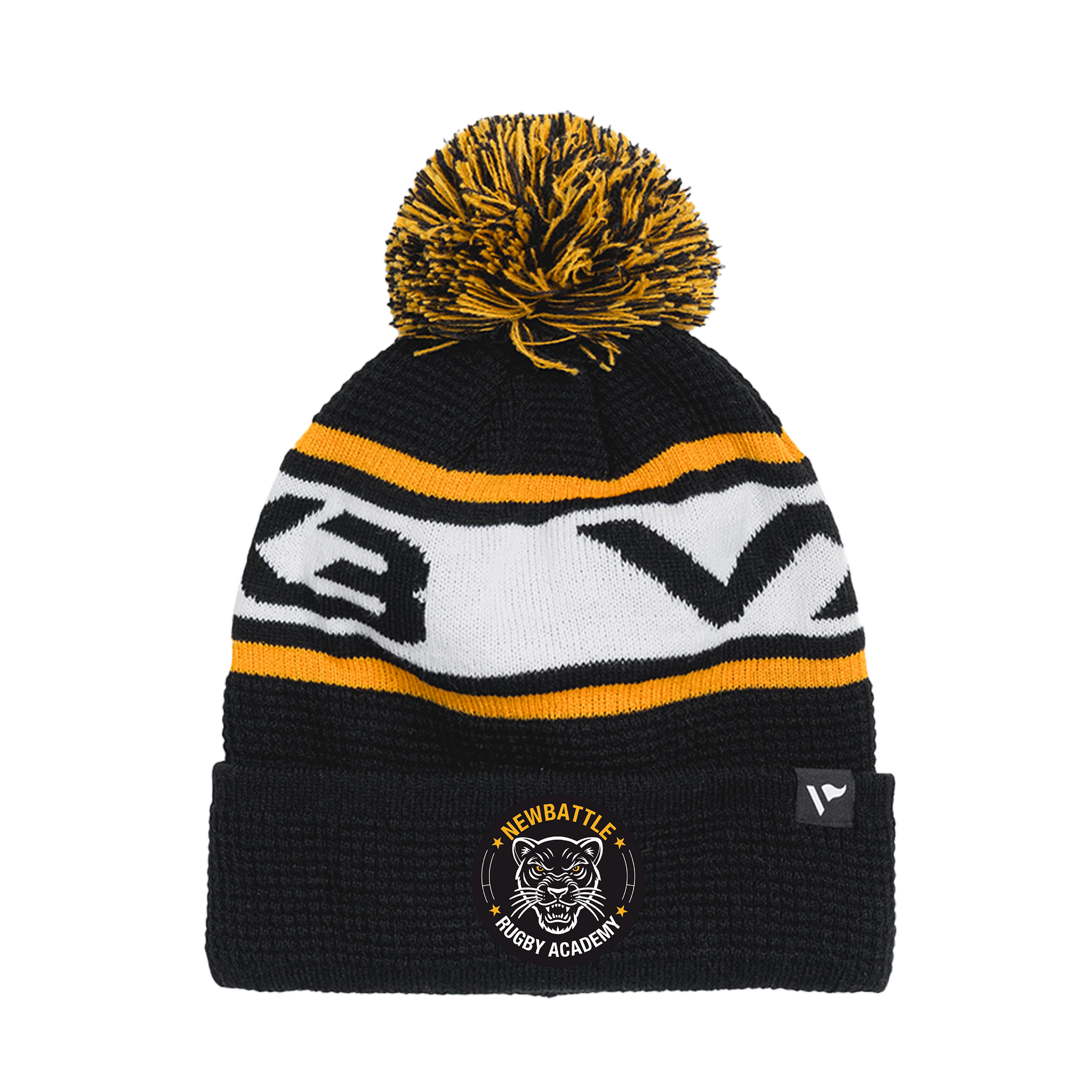 Newbattle Rugby Academy Waffle Knit Bobble Hat - Black/Amber/White