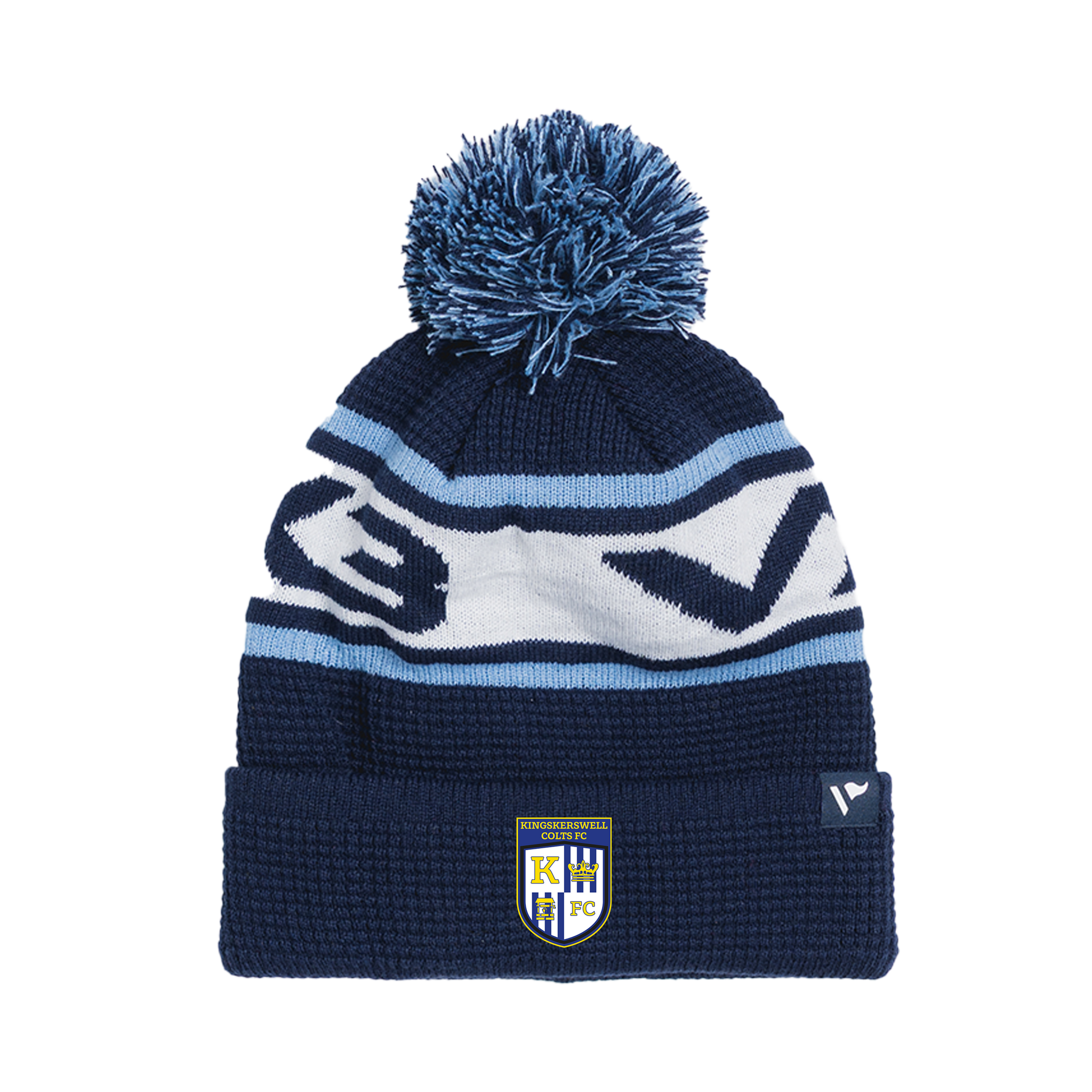 Kingskerswell Colts FC Waffle Knit Bobble Hat - Navy/Sky/White
