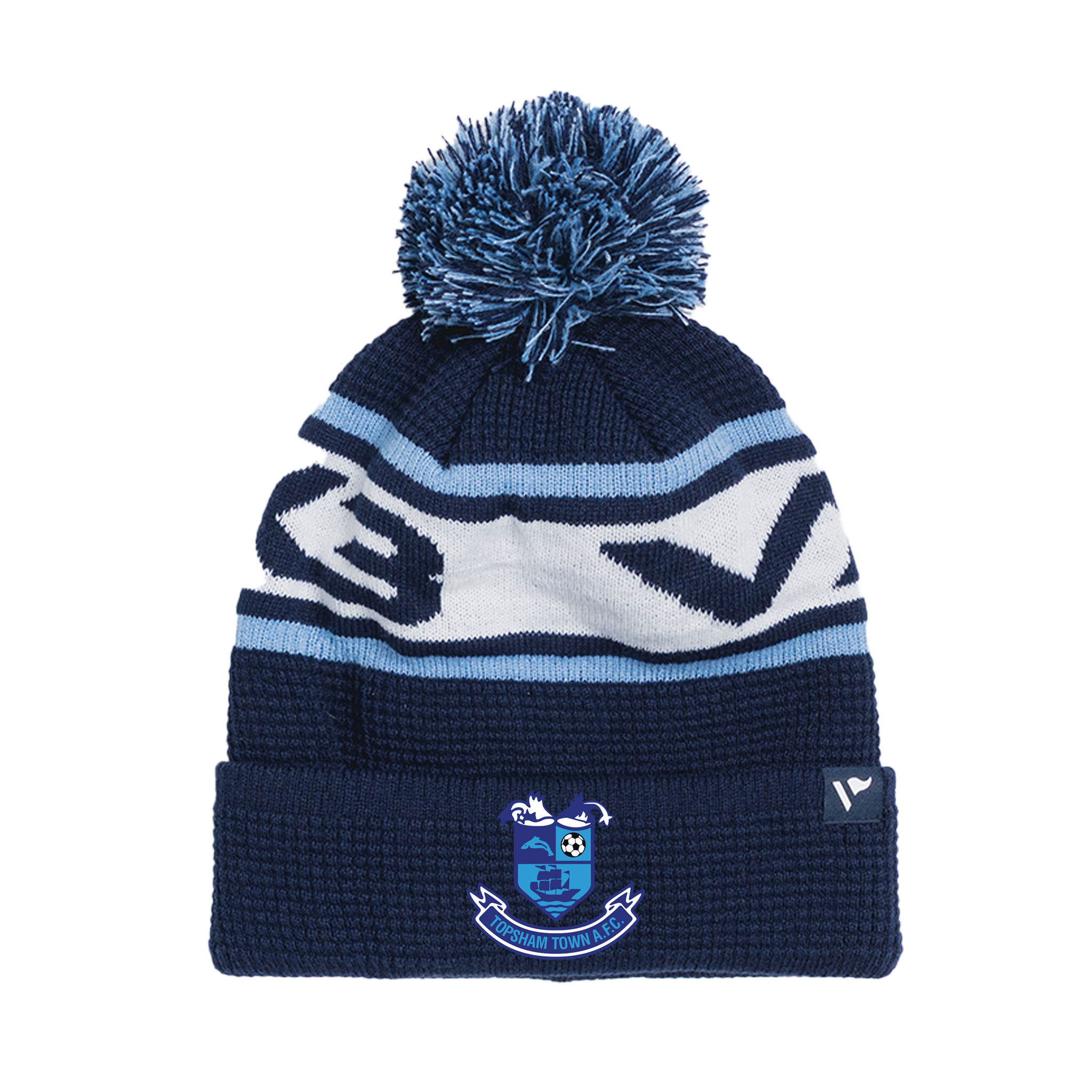 Topsham Town FC Waffle Knit Bobble Hat - Navy/Sky/White