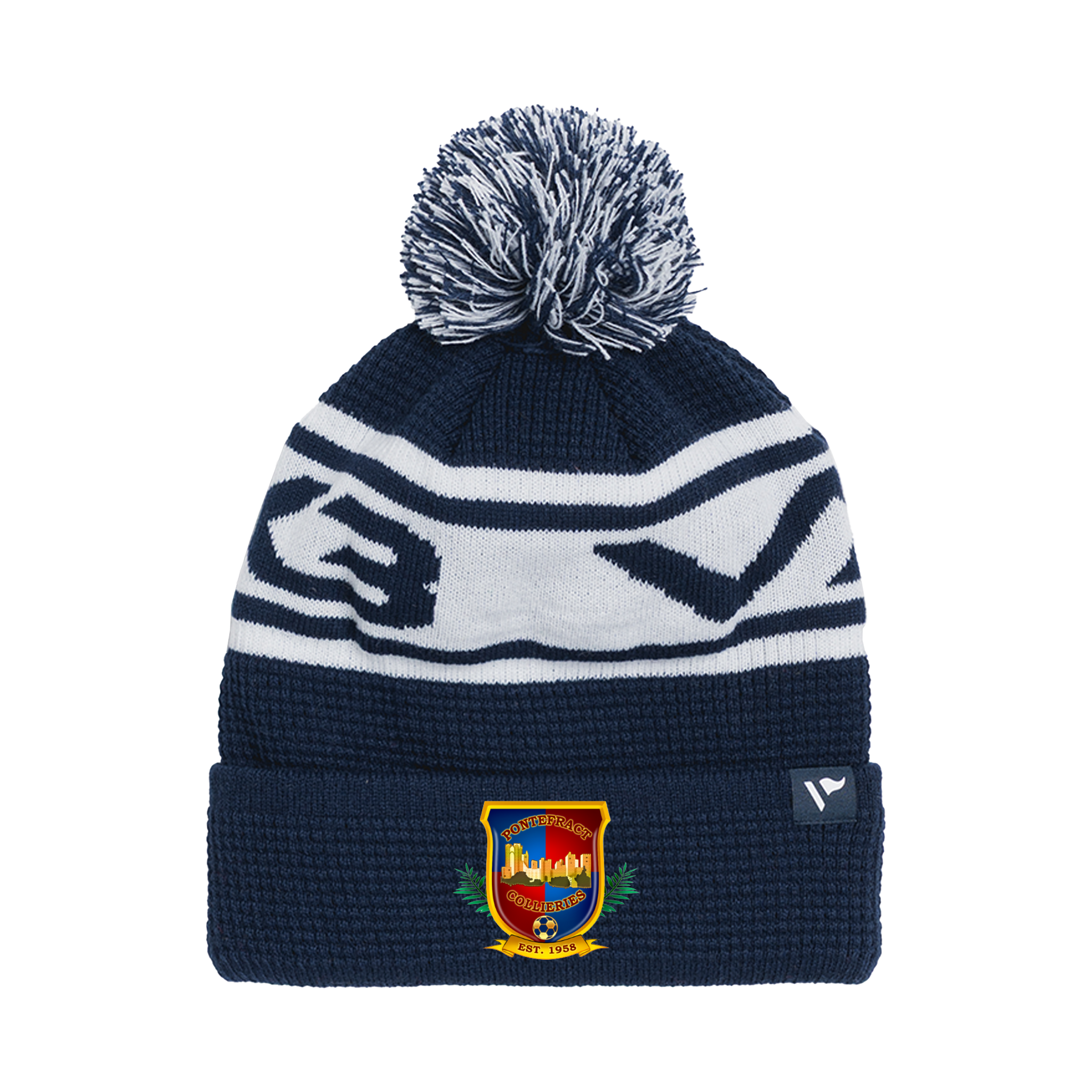 Pontefract Collieries FC Waffle Knit Bobble Hat - Navy/White