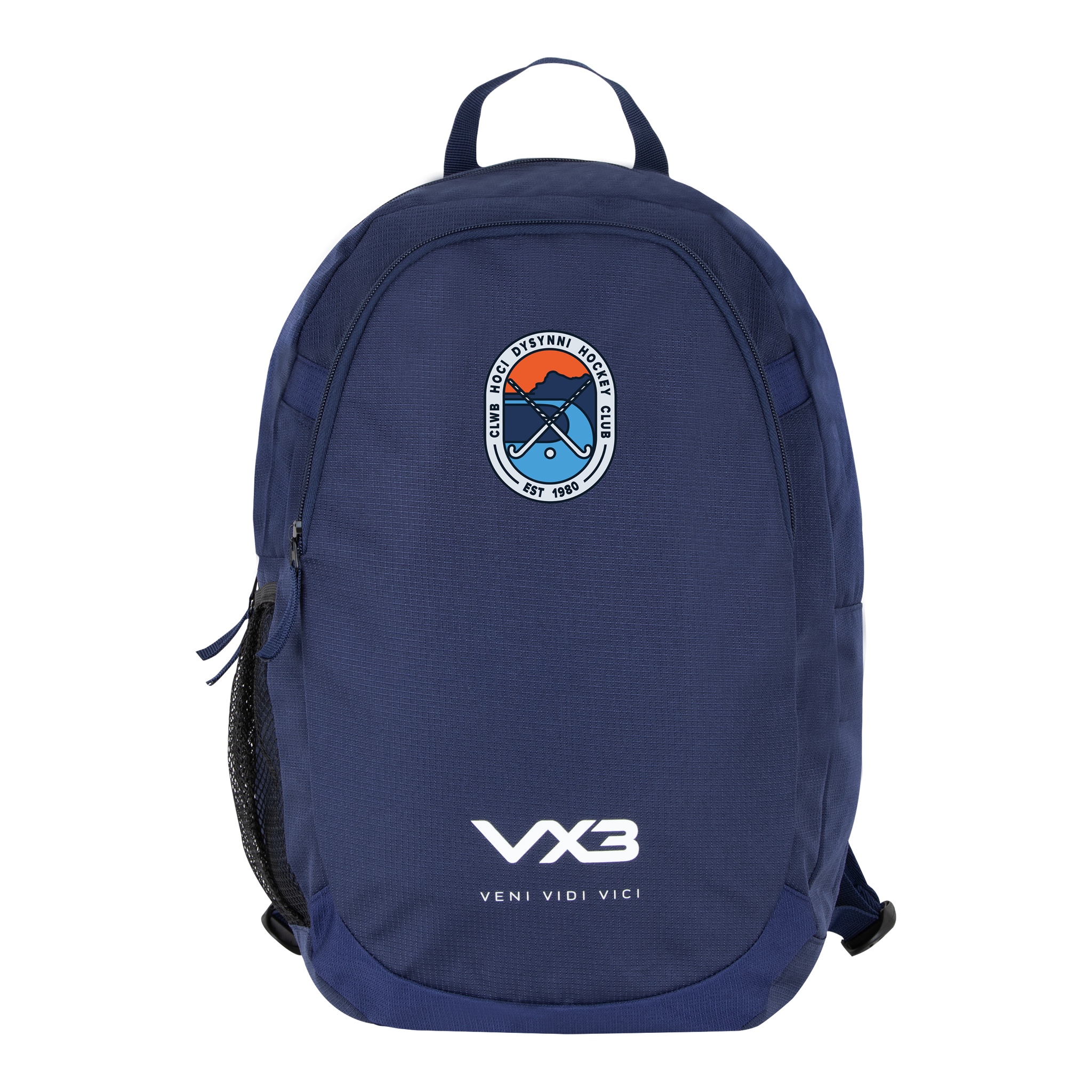 The VX3 logo is printed on the large front pocket at the bottom of the backpack with the slogan 'Veni, Vidi, Vici' underneath. Store your essentials in confidence and keep them safe and dry with the VX3 Performance Backpack, essential for any active person always on the go
