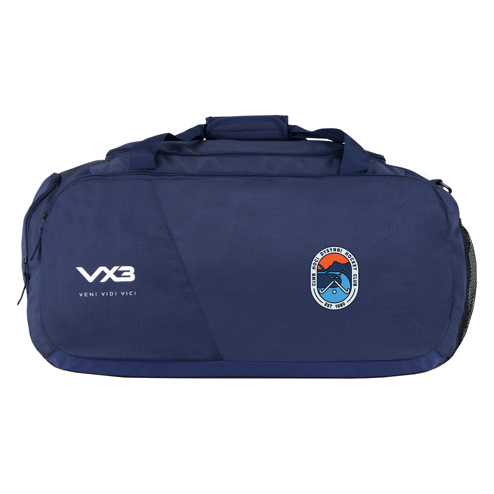 This bag is navy and has been finished with the VX3 logo printed on the front pocket in white with the slogan "veni, vidi, vici" underneath.