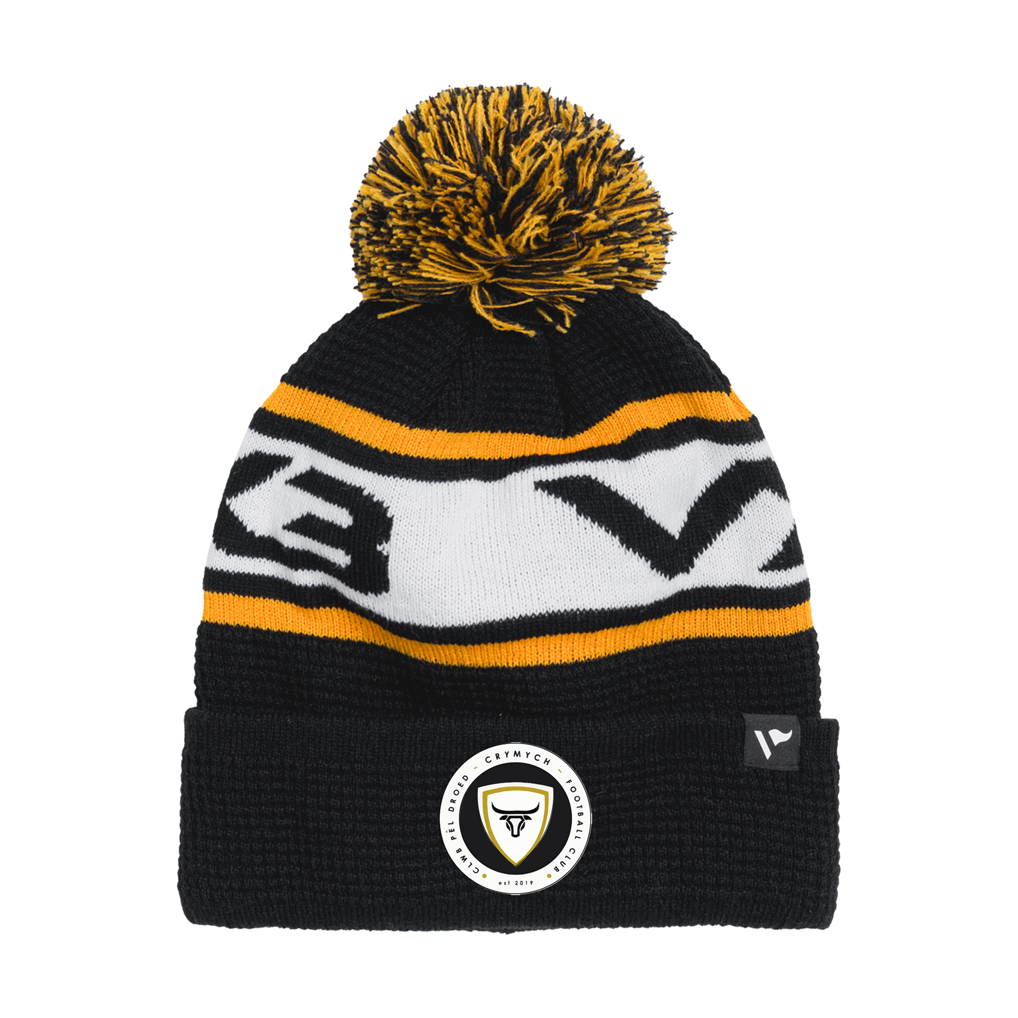 Crymych FC Waffle Knit Bobble Hat - Black/Amber/White