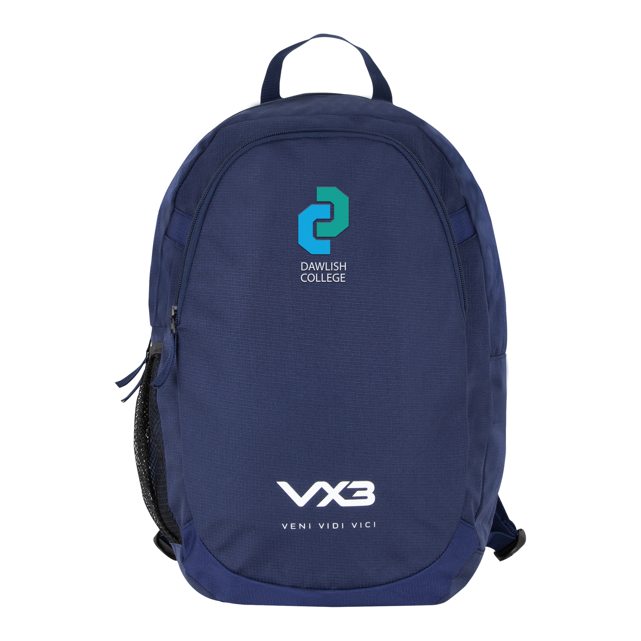 The VX3 logo is printed on the large front pocket at the bottom of the backpack with the slogan 'Veni, Vidi, Vici' underneath. Store your essentials in confidence and keep them safe and dry with the VX3 Performance Backpack, essential for any active person always on the go