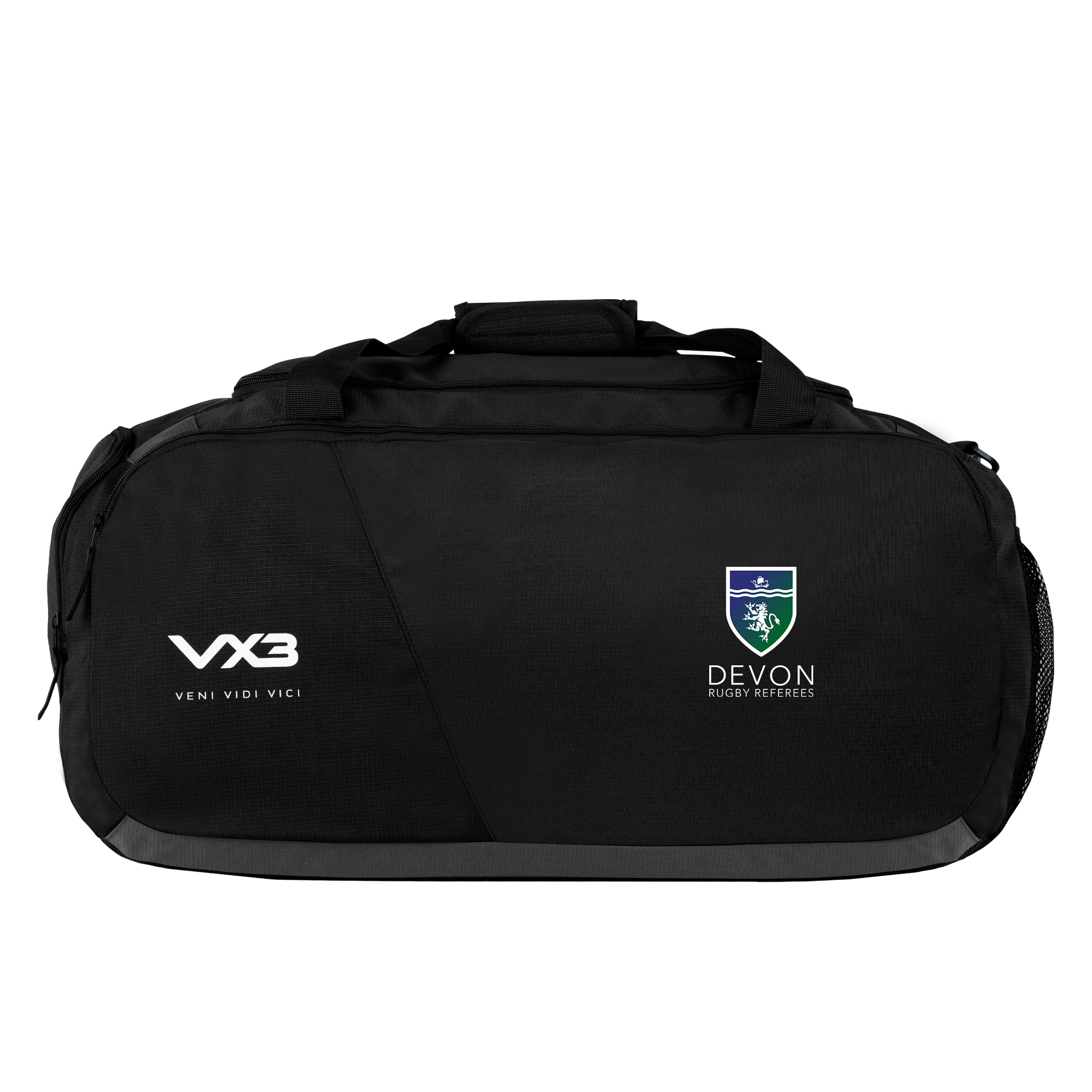 This bag is black and has been finished with the VX3 logo printed on the front pocket in white with the slogan "veni, vidi, vici" underneath.