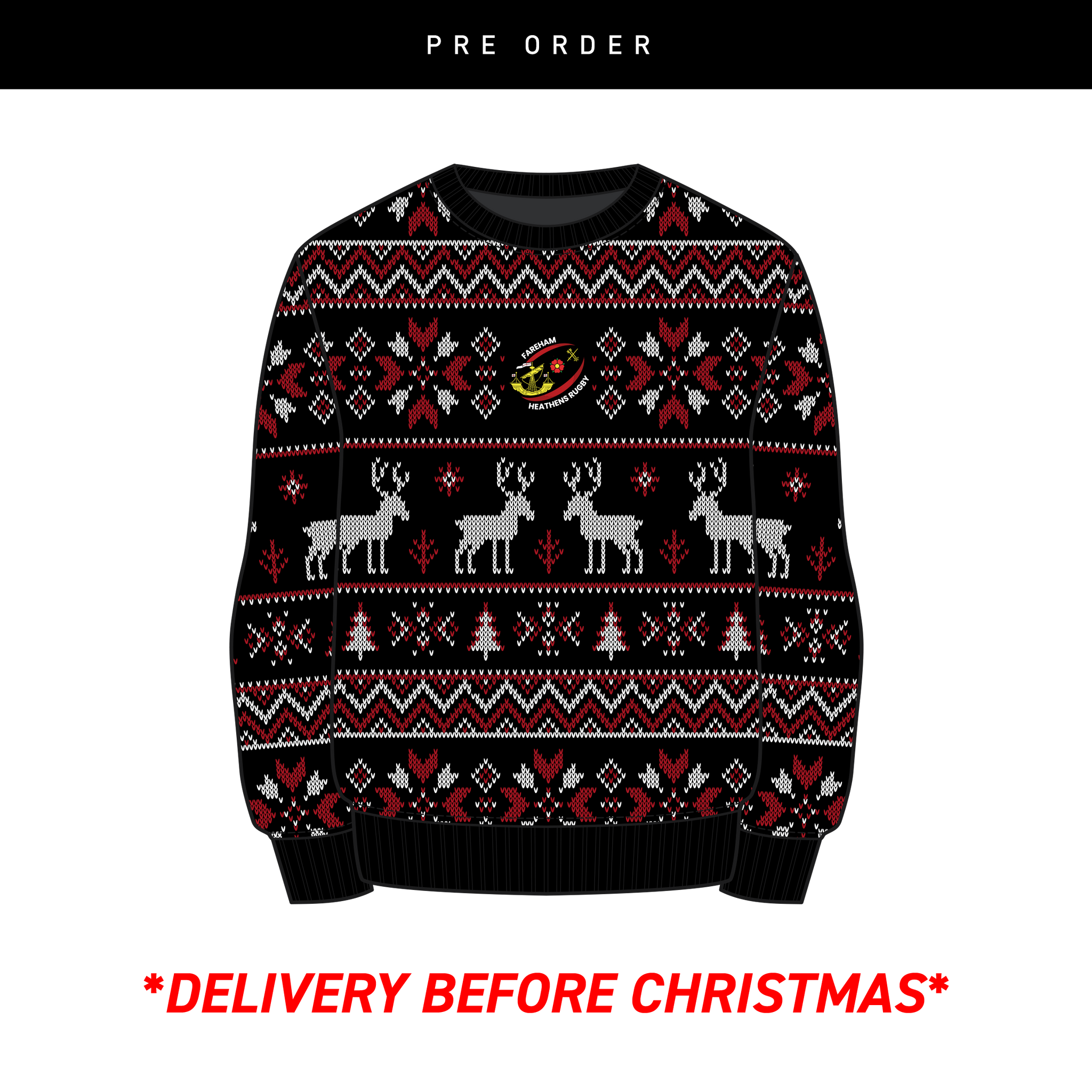 Fareham Heathens Rugby Christmas Jumper - Black/Red/White Youth