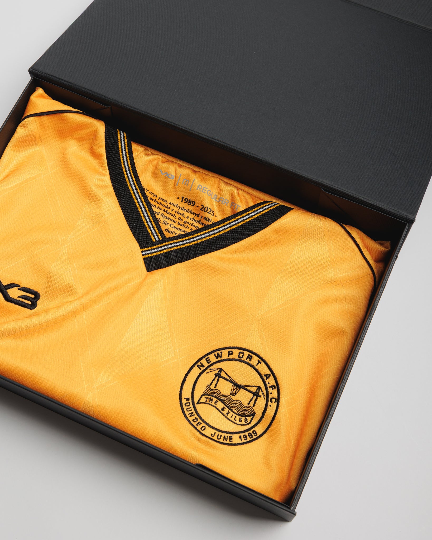 Amber & Black. Reimagined. Introducing the Newport County AFC Moreton-in-Marsh Limited Edition. With only 400 produced, each shirt is individually numbered, ensuring your shirt is unique to you. Delivered in a premium presentation box for the ultimate collector.