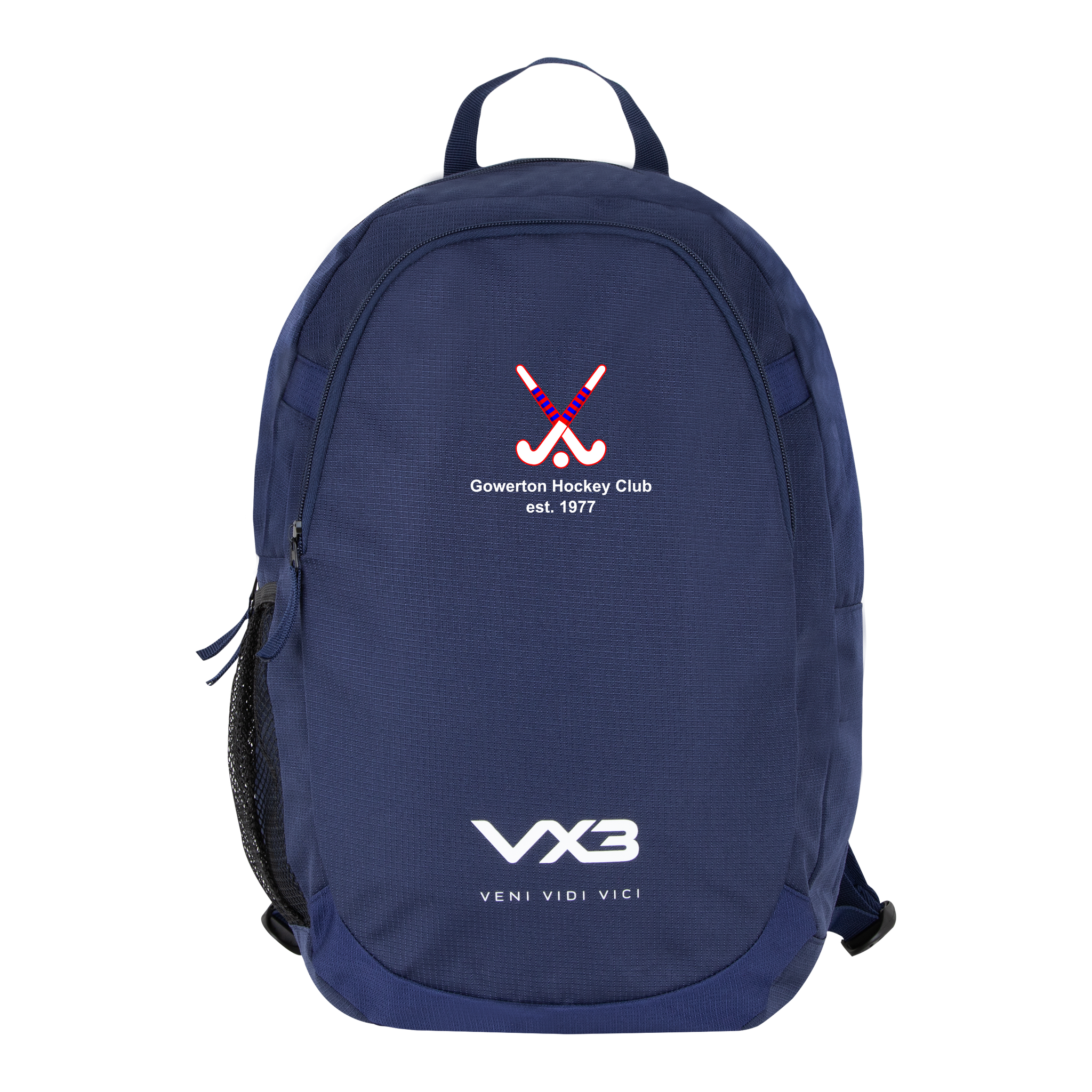 The VX3 logo is printed on the large front pocket at the bottom of the backpack with the slogan 'Veni, Vidi, Vici' underneath. Store your essentials in confidence and keep them safe and dry with the VX3 Performance Backpack, essential for any active person always on the go