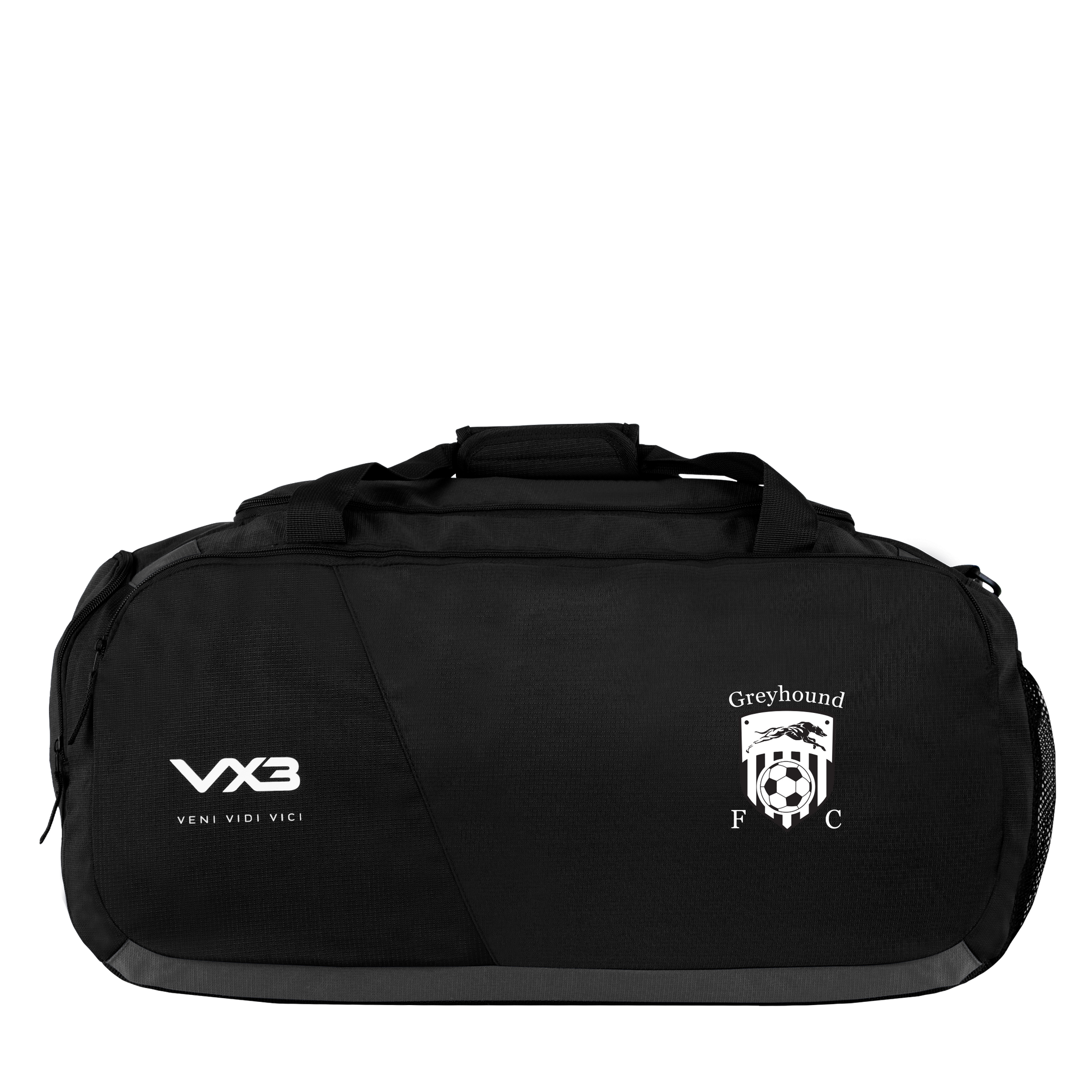 This bag is black and has been finished with the VX3 logo printed on the front pocket in white with the slogan "veni, vidi, vici" underneath.