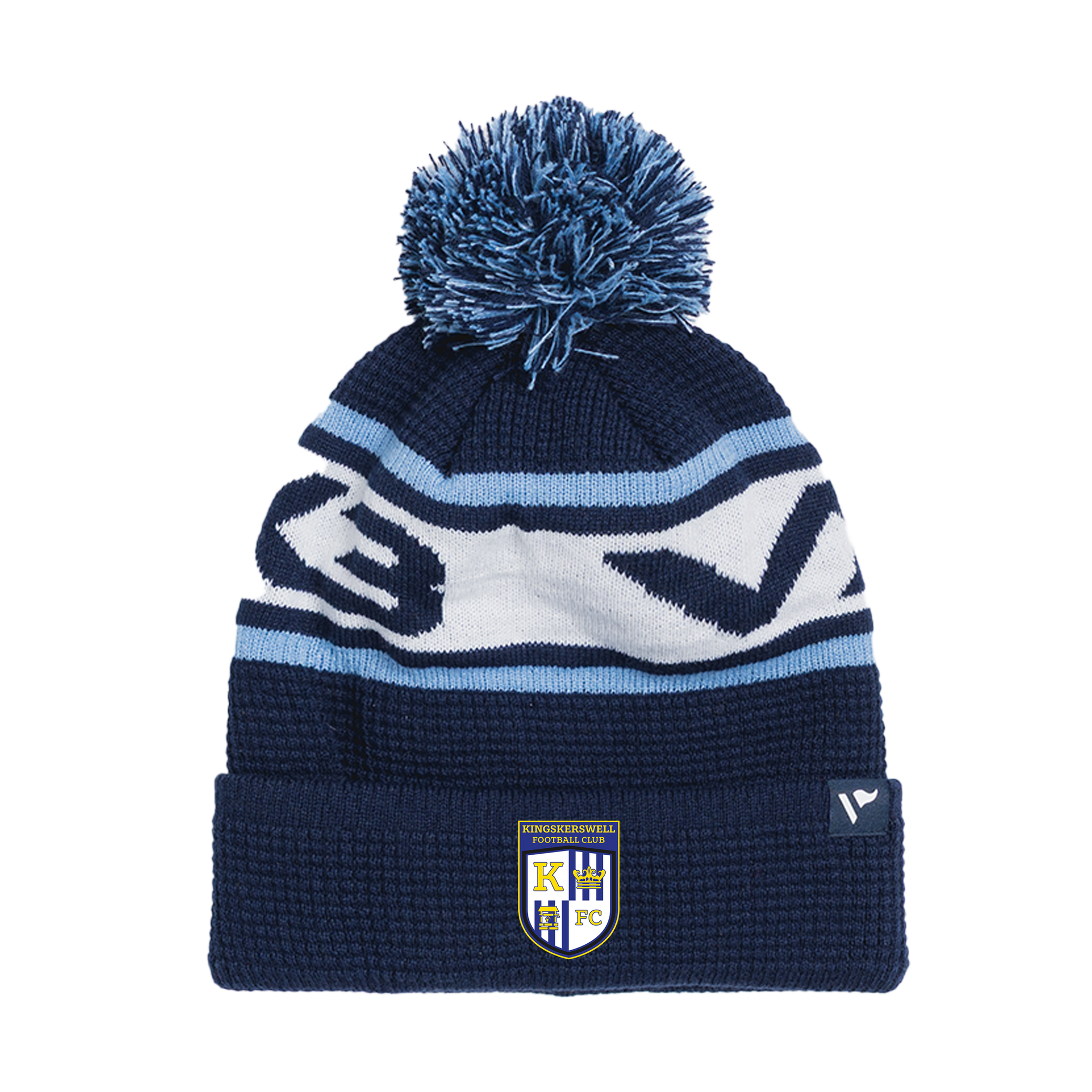 Kingskerswell FC Seniors Waffle Knit Bobble Hat - Navy/Sky/White
