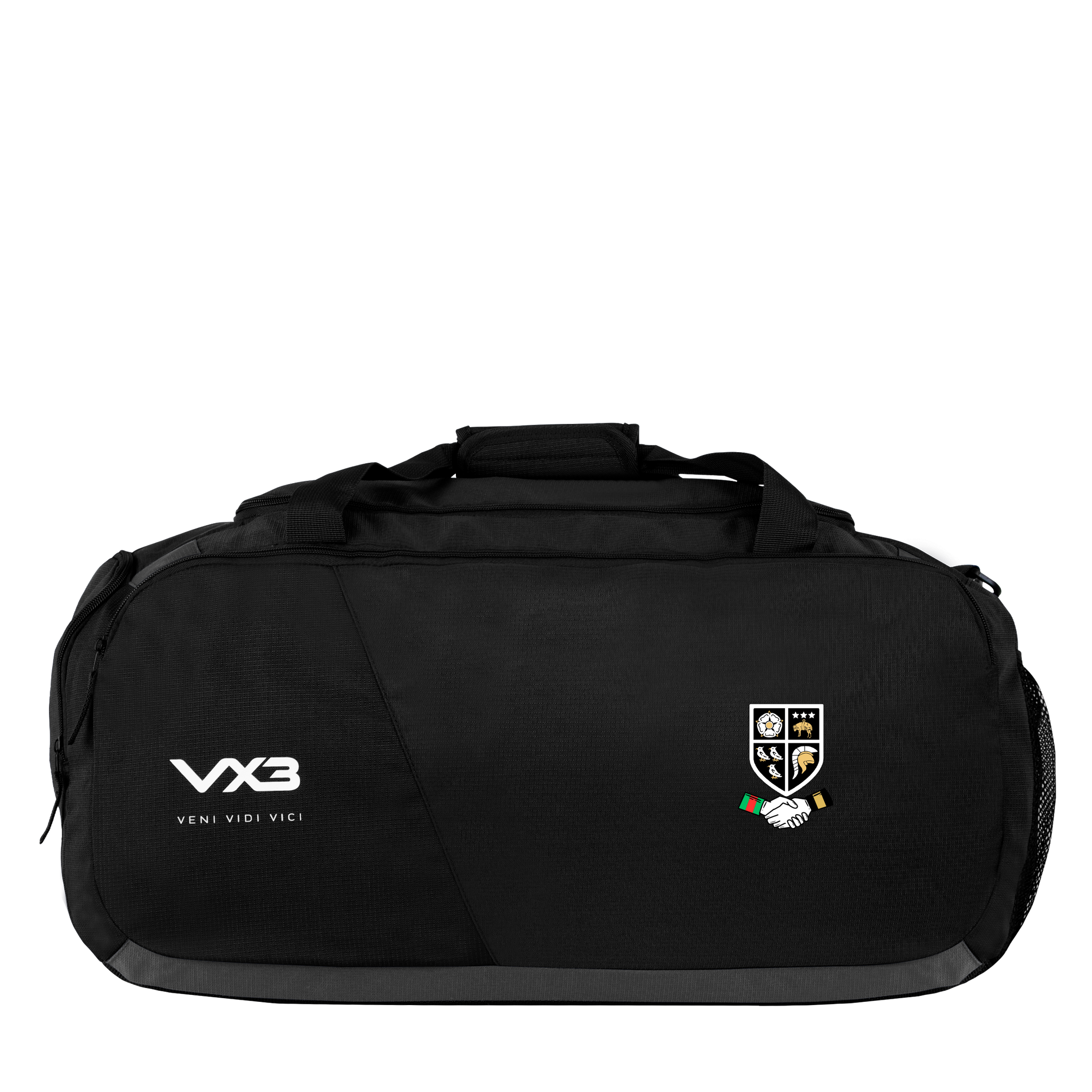 This bag is black and has been finished with the VX3 logo printed on the front pocket in white with the slogan "veni, vidi, vici" underneath.
