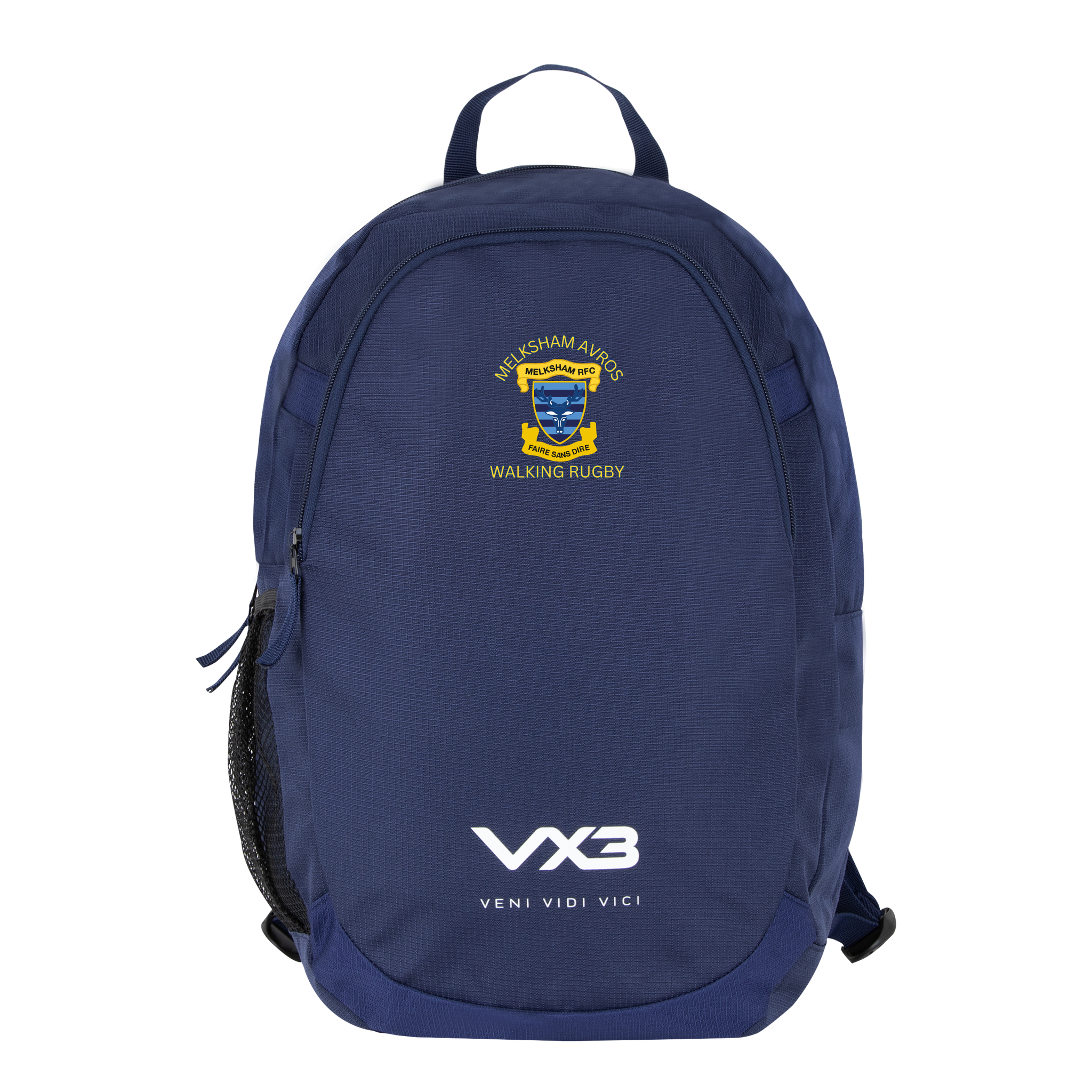 The VX3 logo is printed on the large front pocket at the bottom of the backpack with the slogan 'Veni, Vidi, Vici' underneath. Store your essentials in confidence and keep them safe and dry with the VX3 Performance Backpack, essential for any active person always on the go
