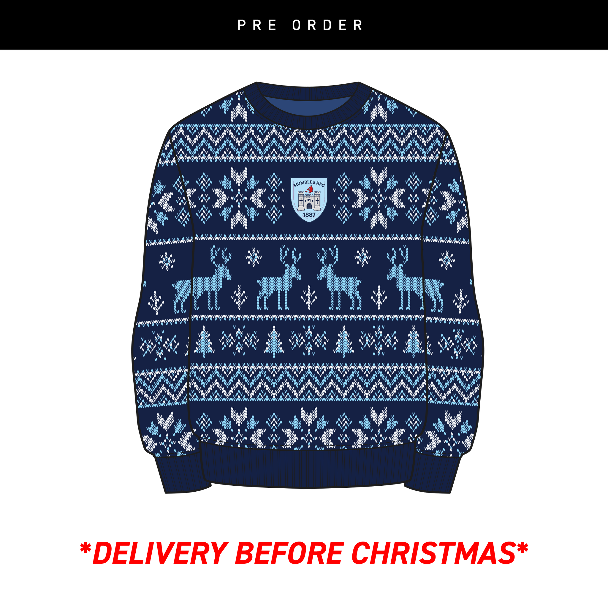 Mumbles RFC Christmas Jumper - Navy/Sky/White