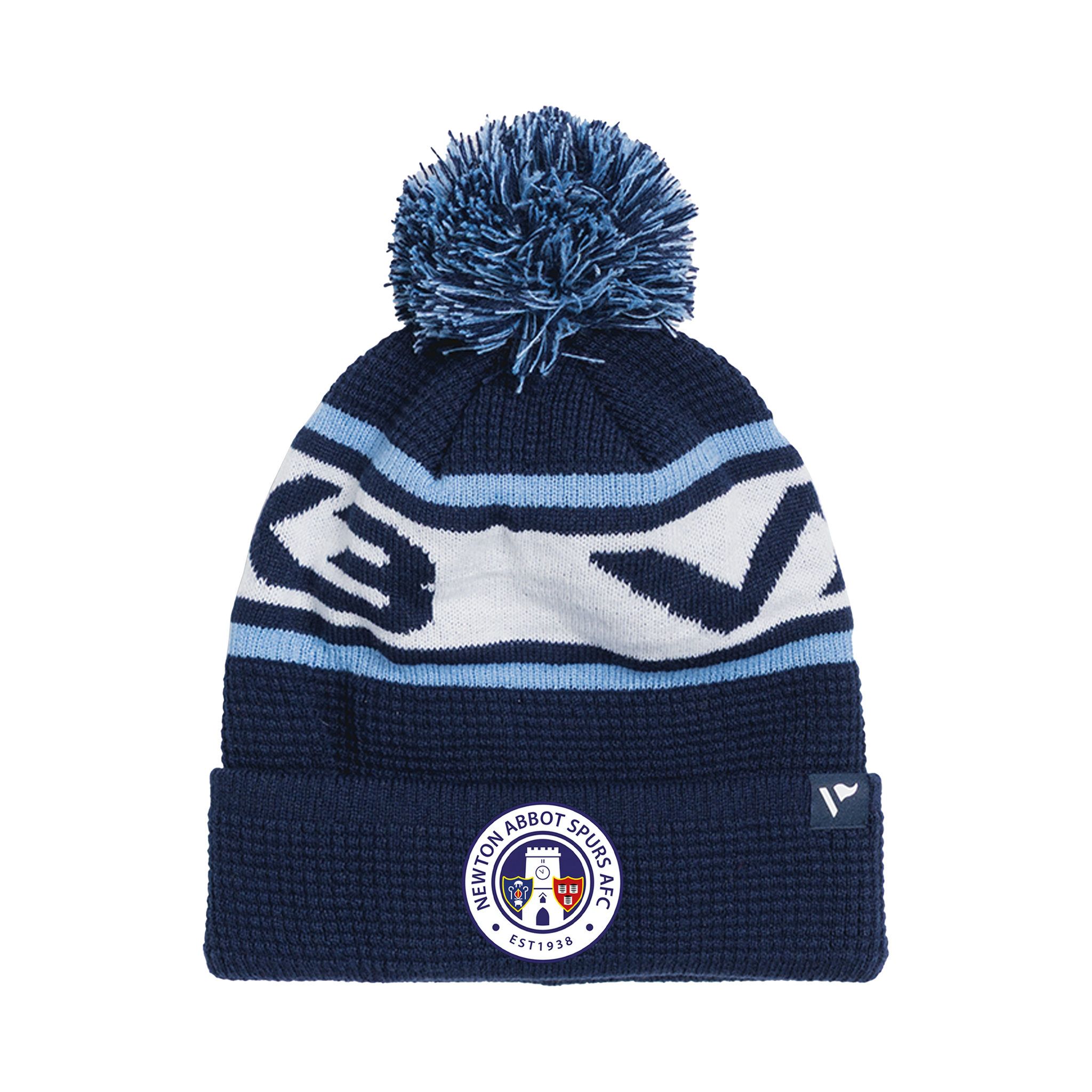 Newton Abbot Spurs AFC Waffle Knit Bobble Hat - Navy/Sky/White