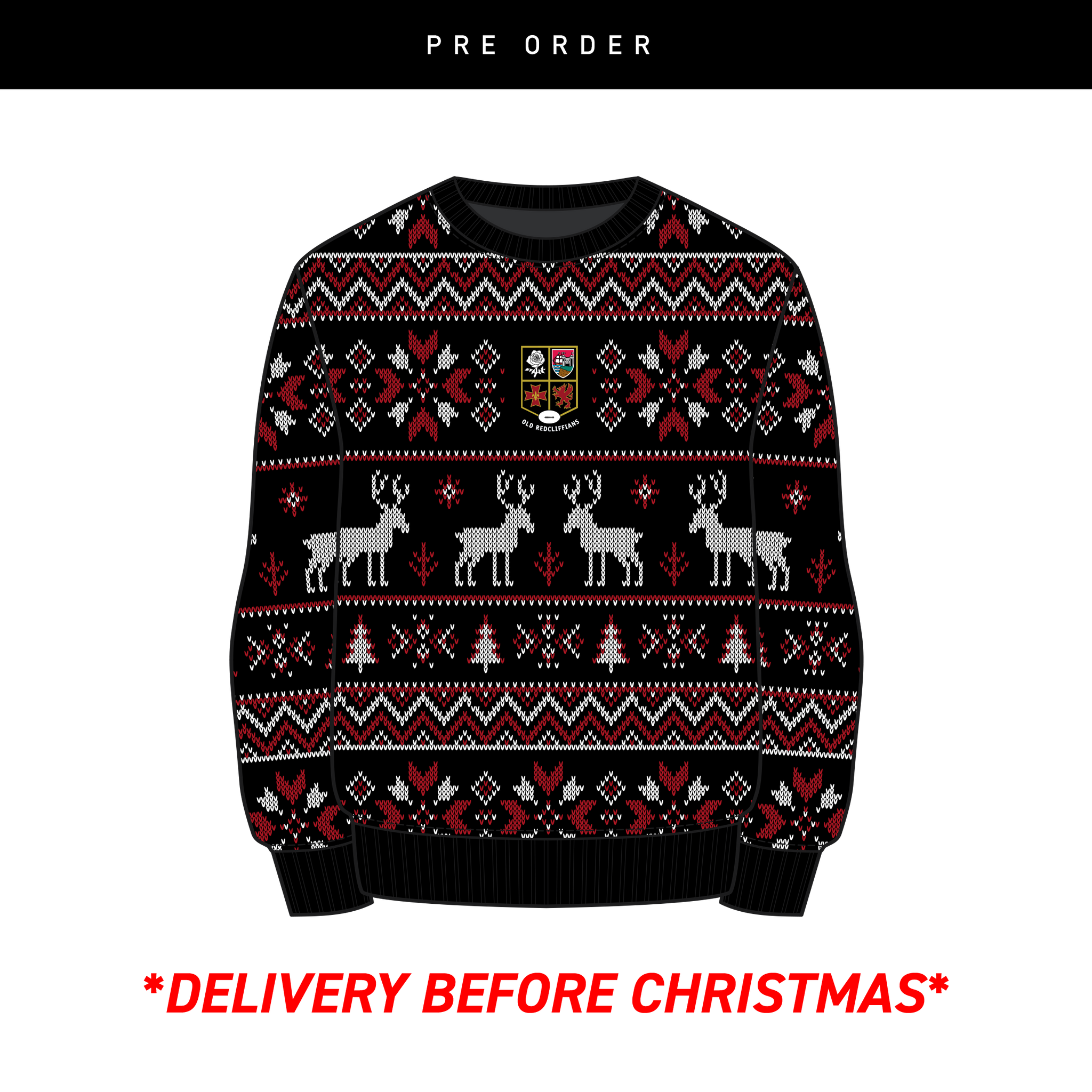Old Redcliffians RFC Christmas Jumper - Black/Red/White Youth
