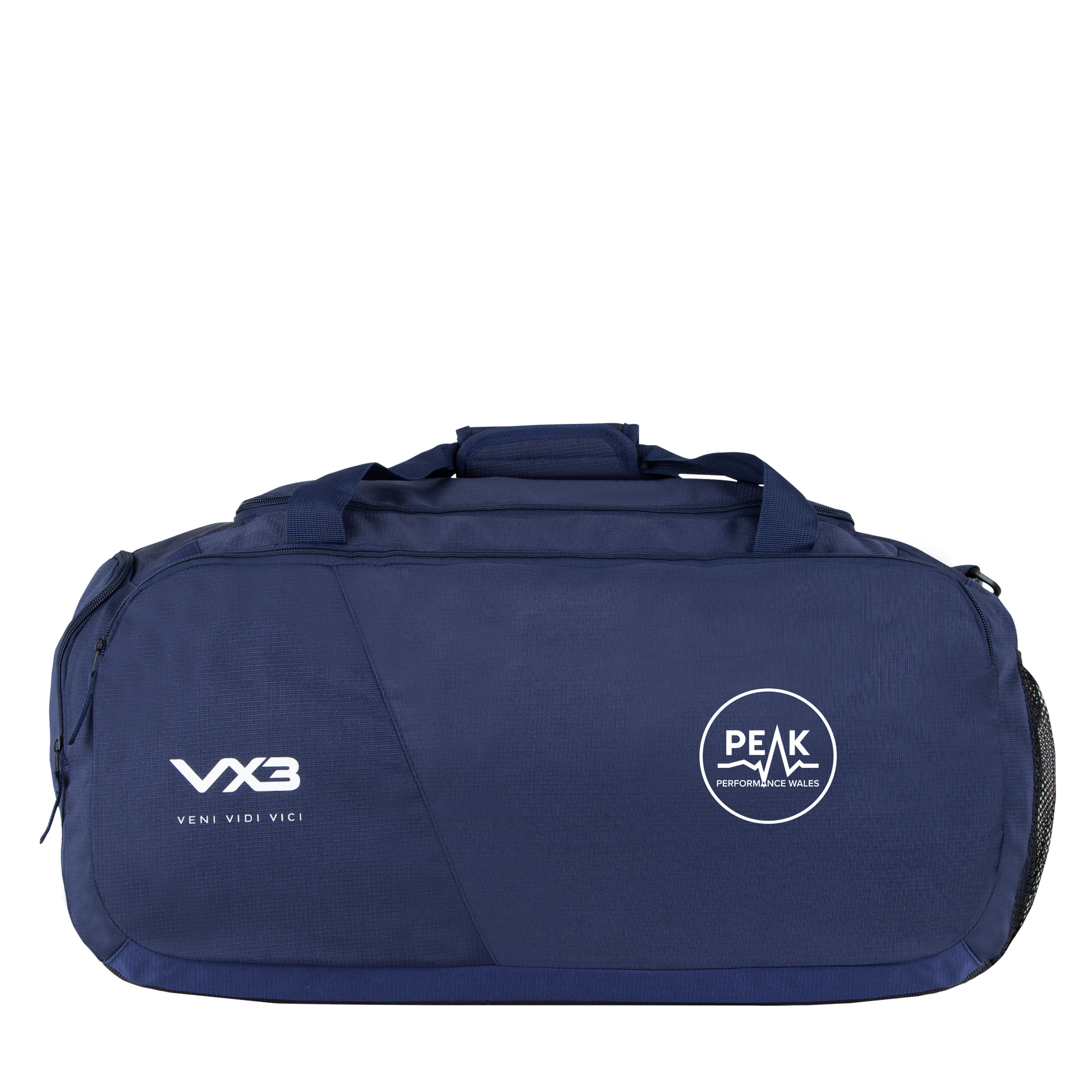 This bag is navy and has been finished with the VX3 logo printed on the front pocket in white with the slogan "veni, vidi, vici" underneath.