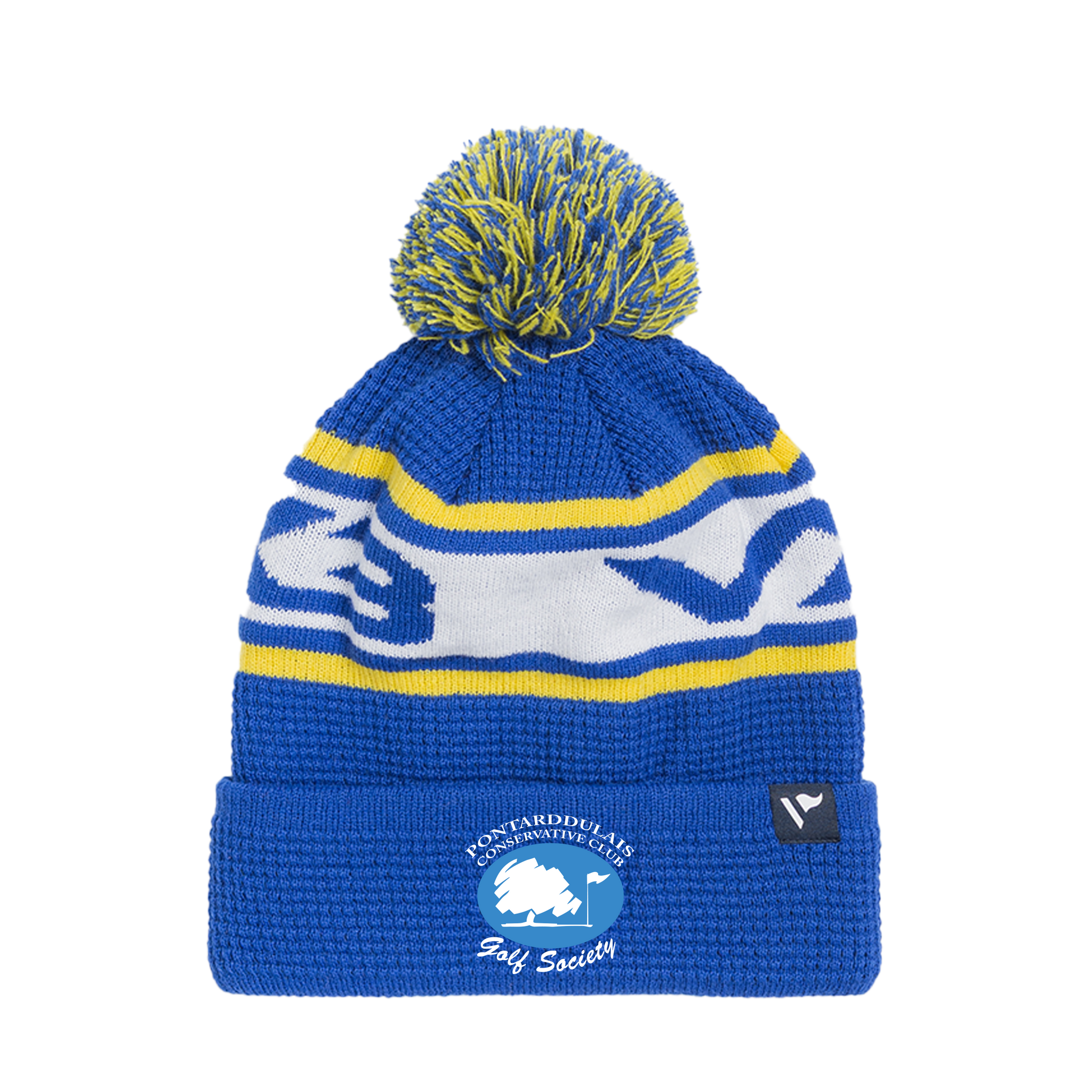 Pontarddulais Con Golf Society Waffle Knit Bobble Hat - Royal/Yellow/White
