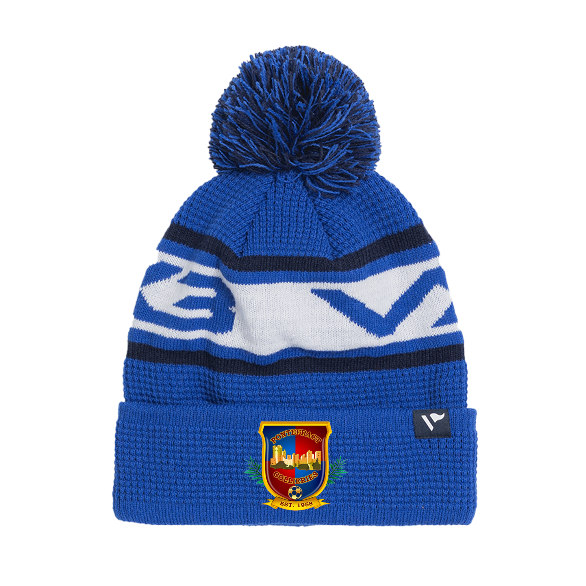 Pontefract Collieries FC Waffle Knit Bobble Hat - Royal/Navy/White