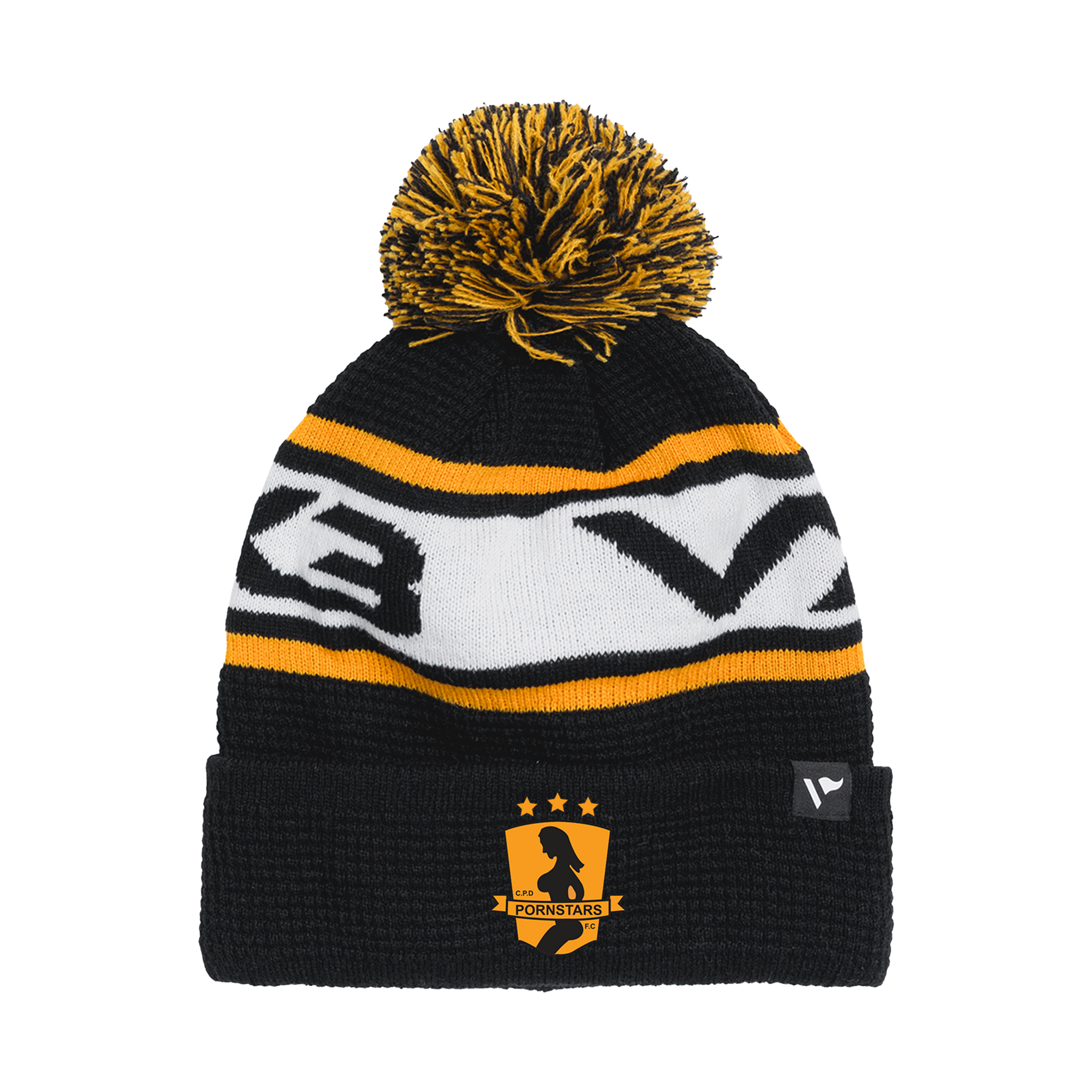 Pornstars FC Waffle Knit Bobble Hat - Black/Amber/White
