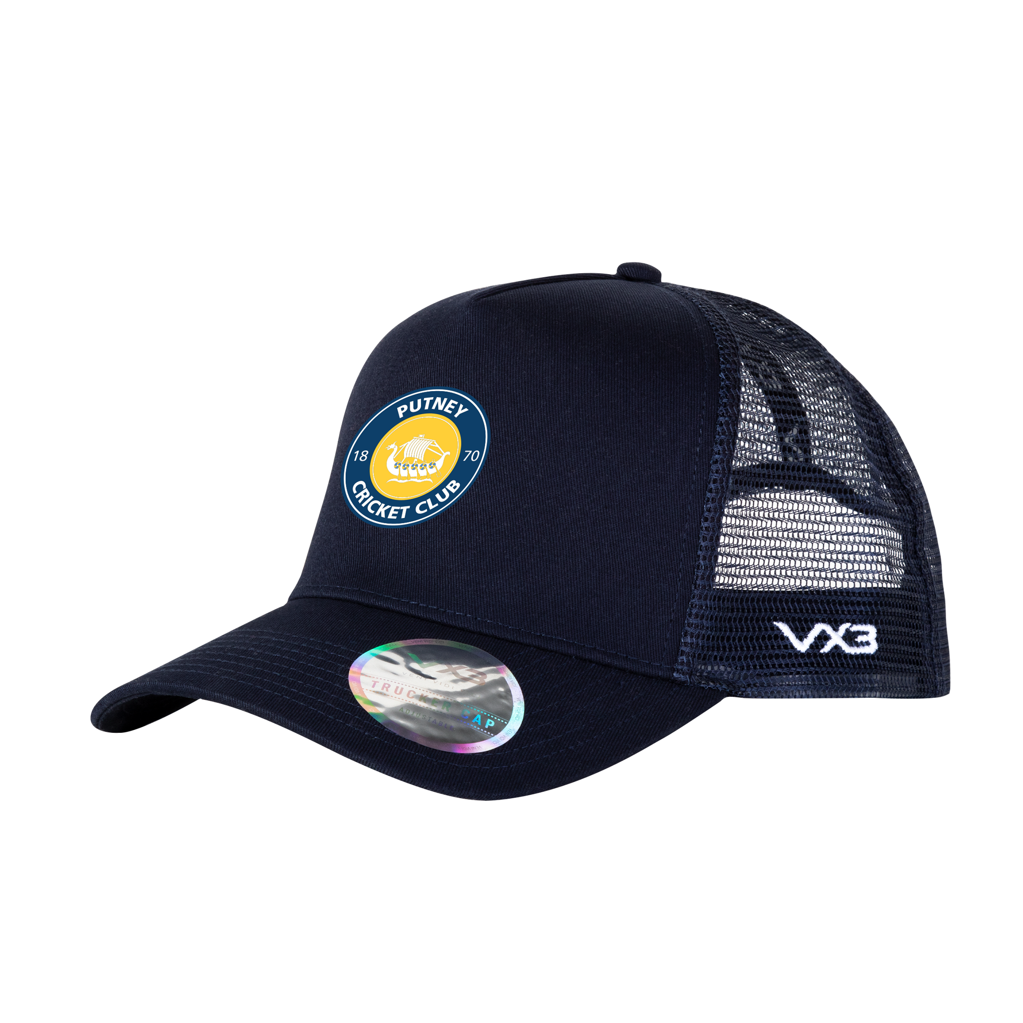 - VX3 holographic sticker on peak
