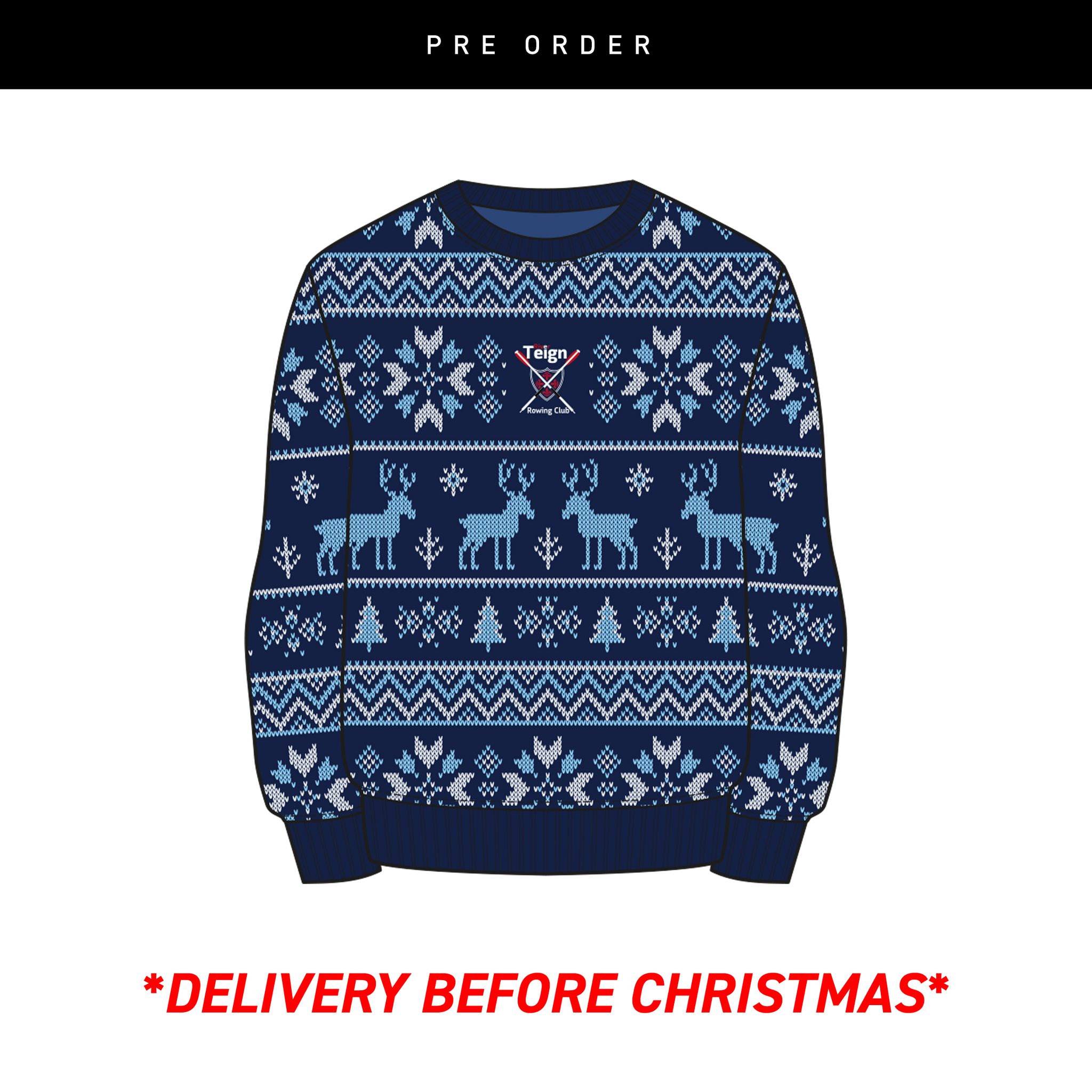River Teign Rowing Club Christmas Jumper - Navy/Sky/White Youth