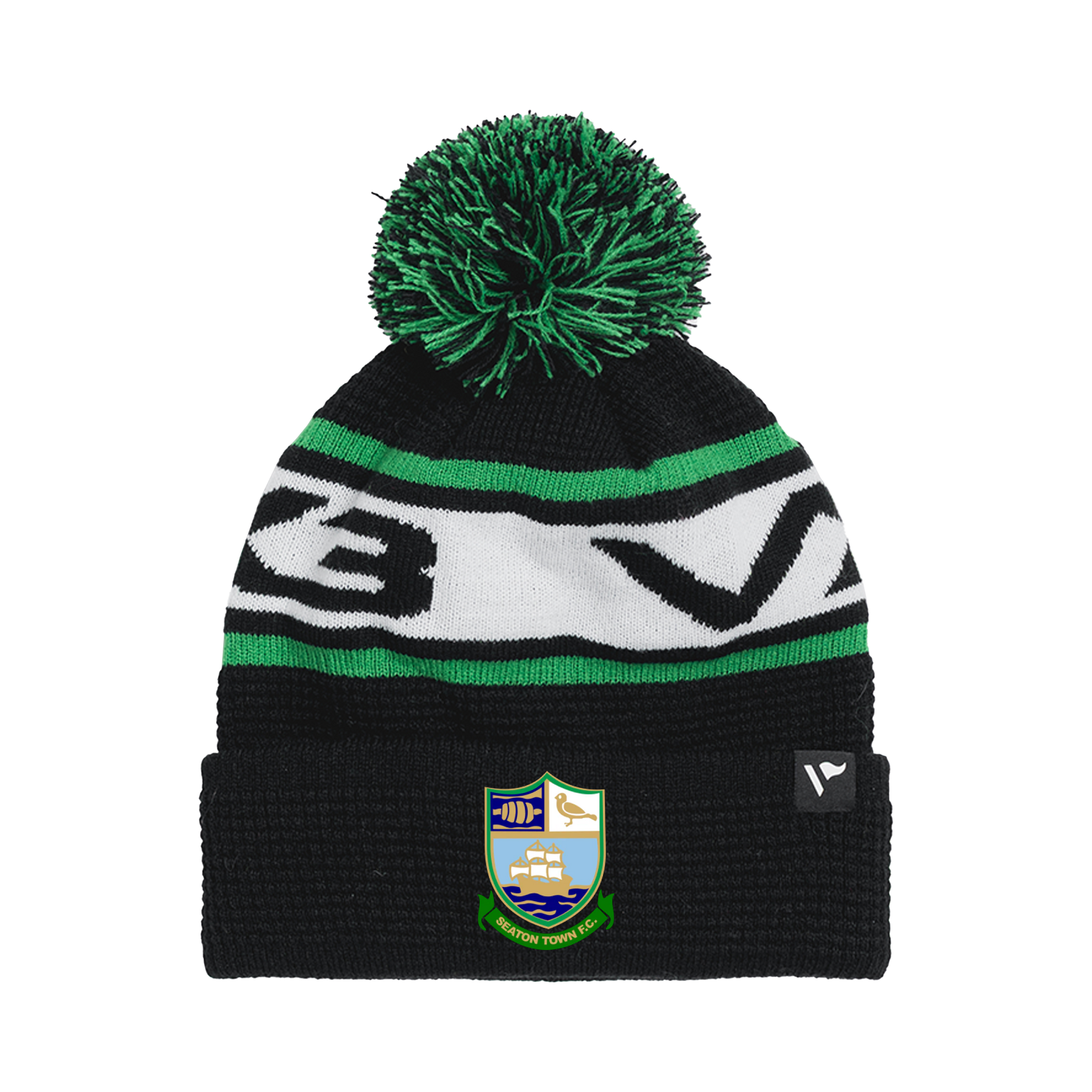 Seaton Town FC Waffle Knit Bobble Hat - Black/Emerald/White