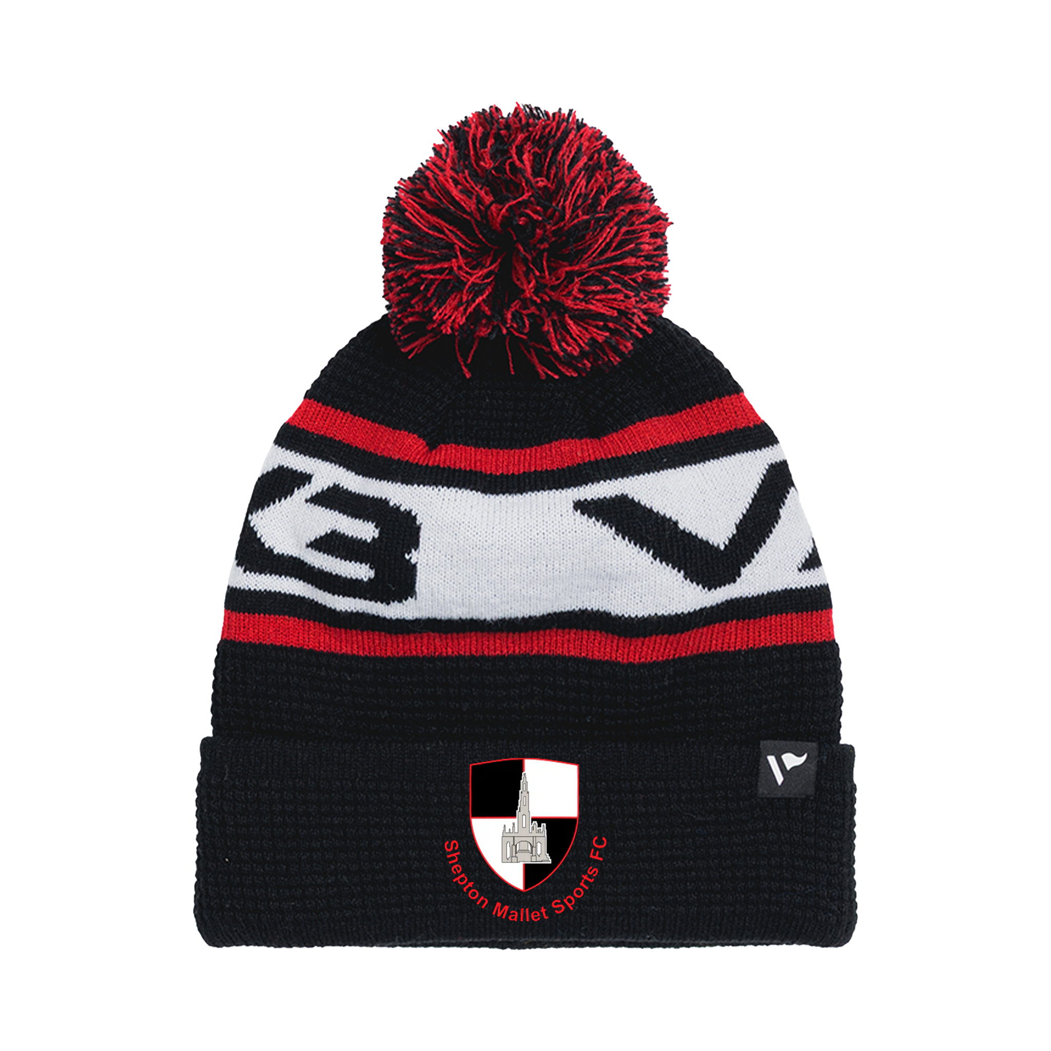 Shepton Mallet AFC Youth Waffle Knit Bobble Hat - Black/Red/White