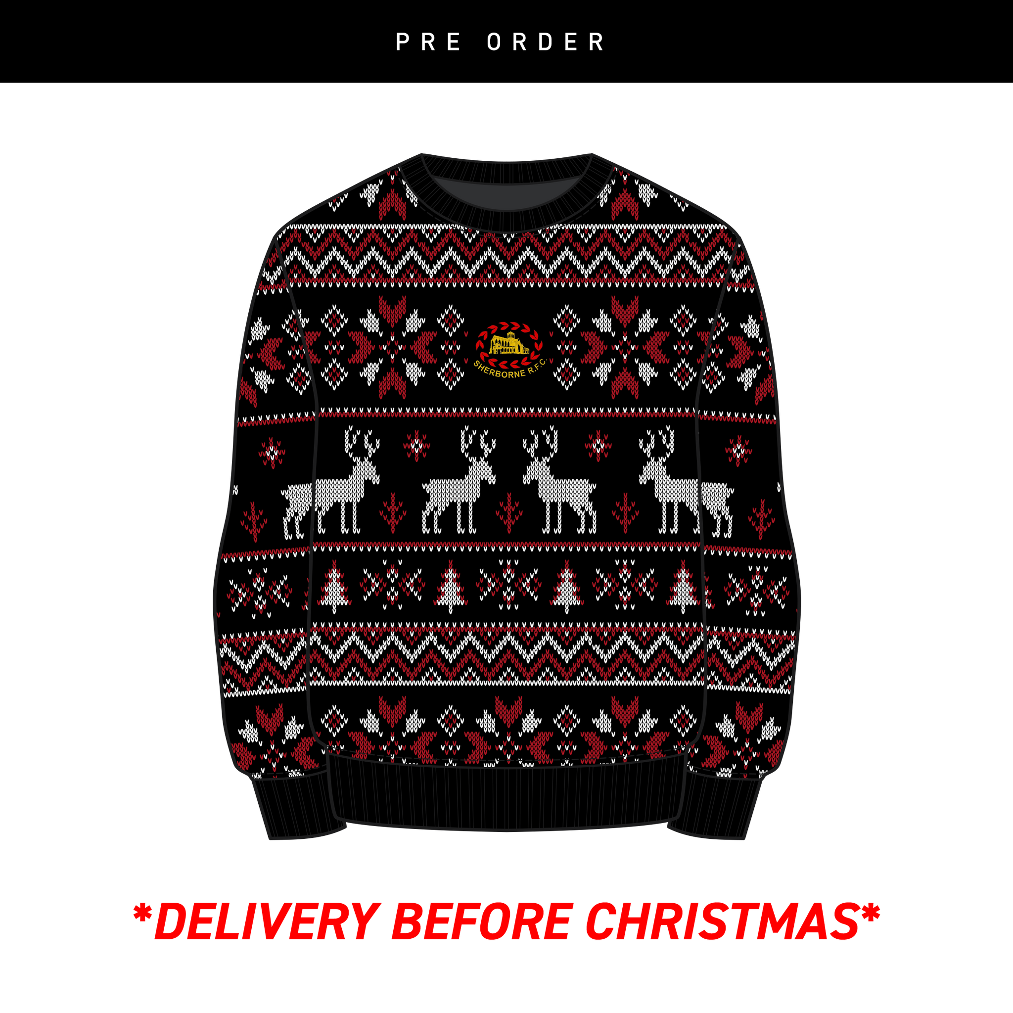 Sherborne RFC Christmas Jumper - Black/Red/White Youth
