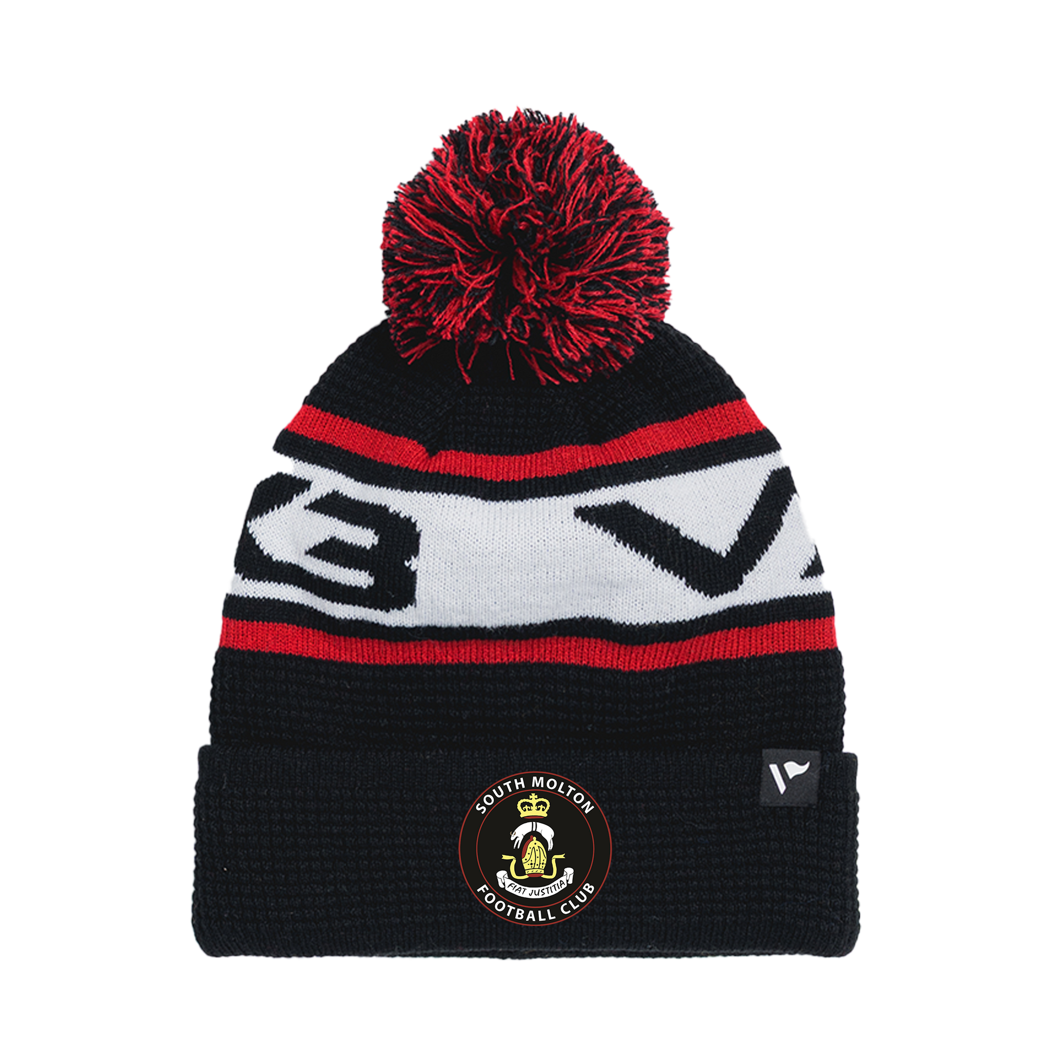 South Molton FC Waffle Knit Bobble Hat - Black/Red/White
