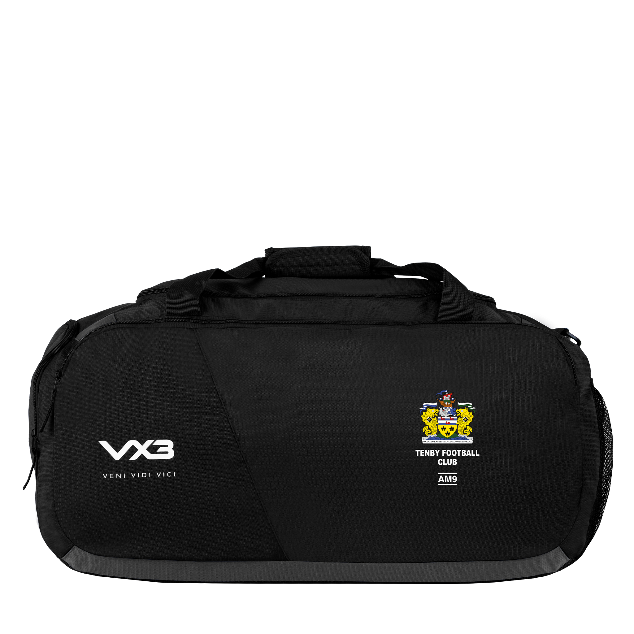 This bag is black and has been finished with the VX3 logo printed on the front pocket in white with the slogan "veni, vidi, vici" underneath.