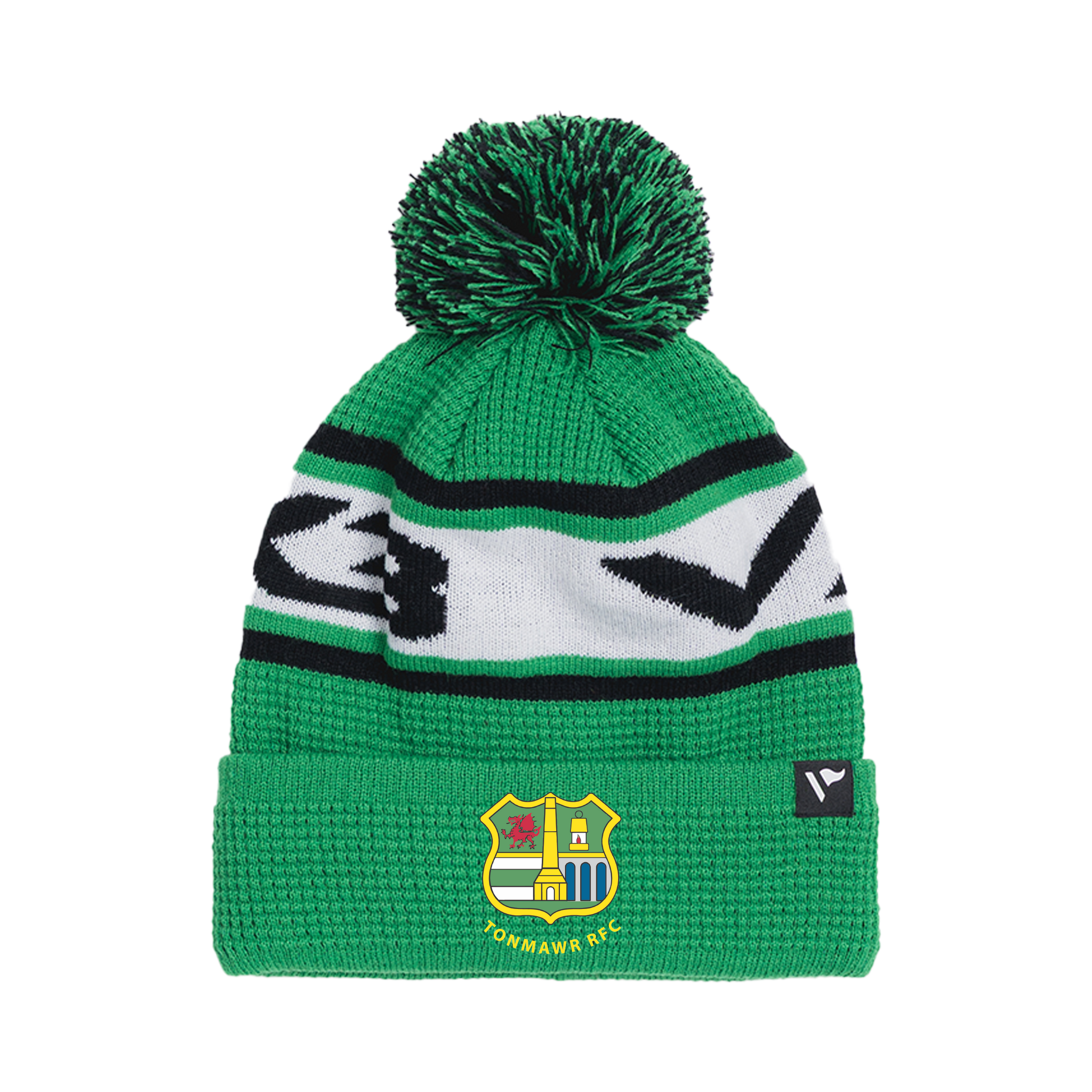 Tonmawr RFC Waffle Knit Bobble Hat - Emerald/Black/White