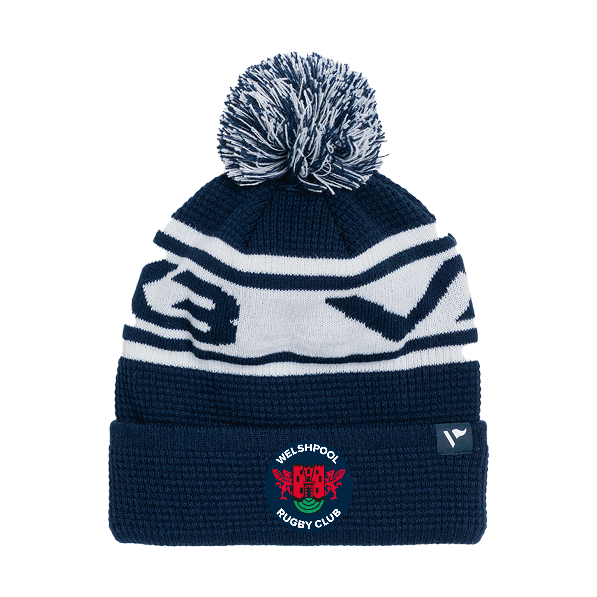 Welshpool RFC Waffle Knit Bobble Hat - Navy/White