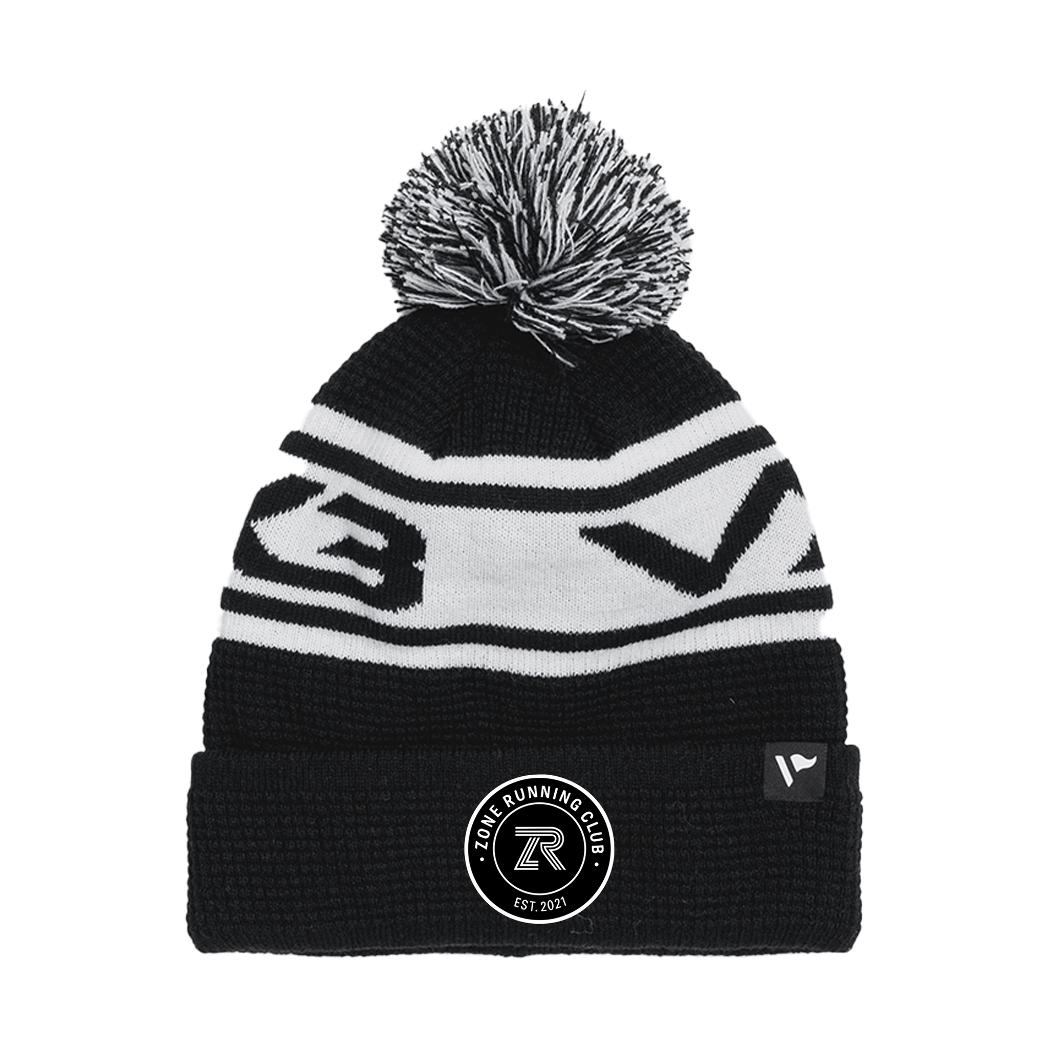 Zone Running Club Waffle Knit Bobble Hat - Black/White