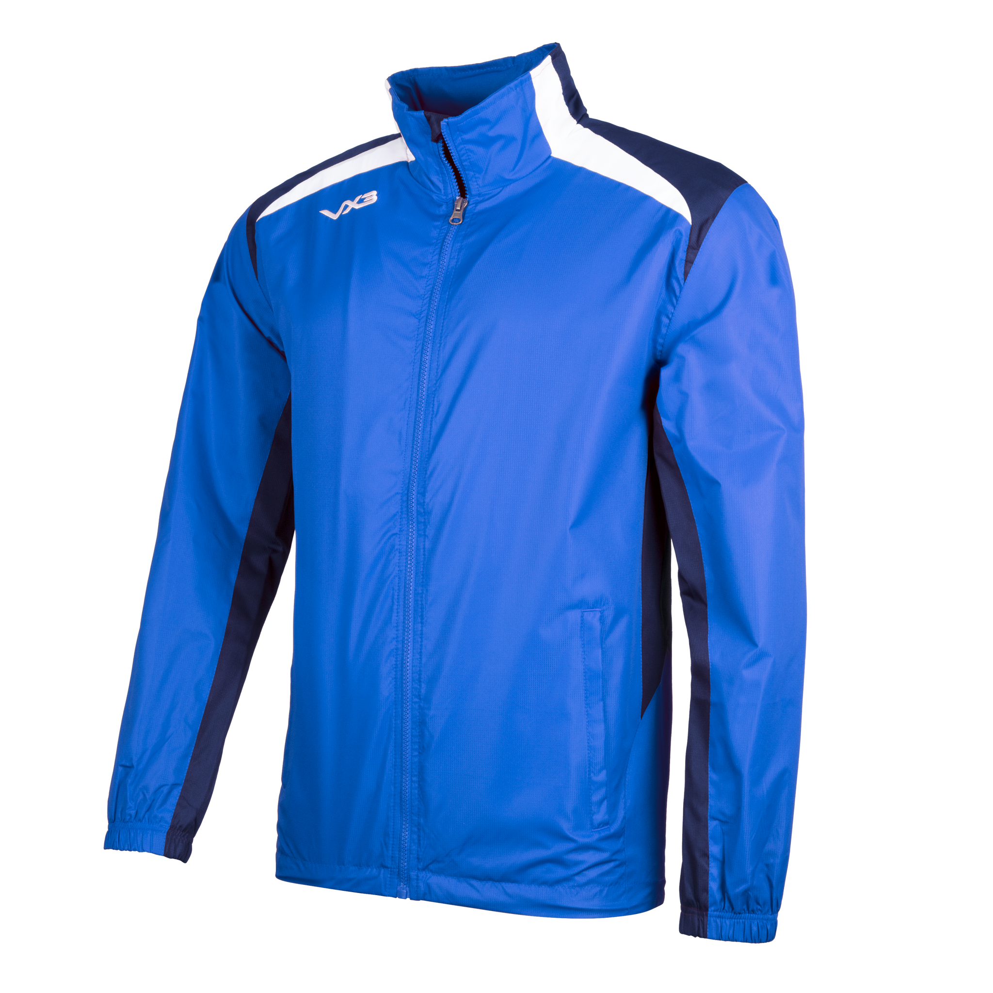 Sporting a royal blue look with navy and white panels upon the shoulders, the VX3 logo appears on the right shoulder and back of the collar.