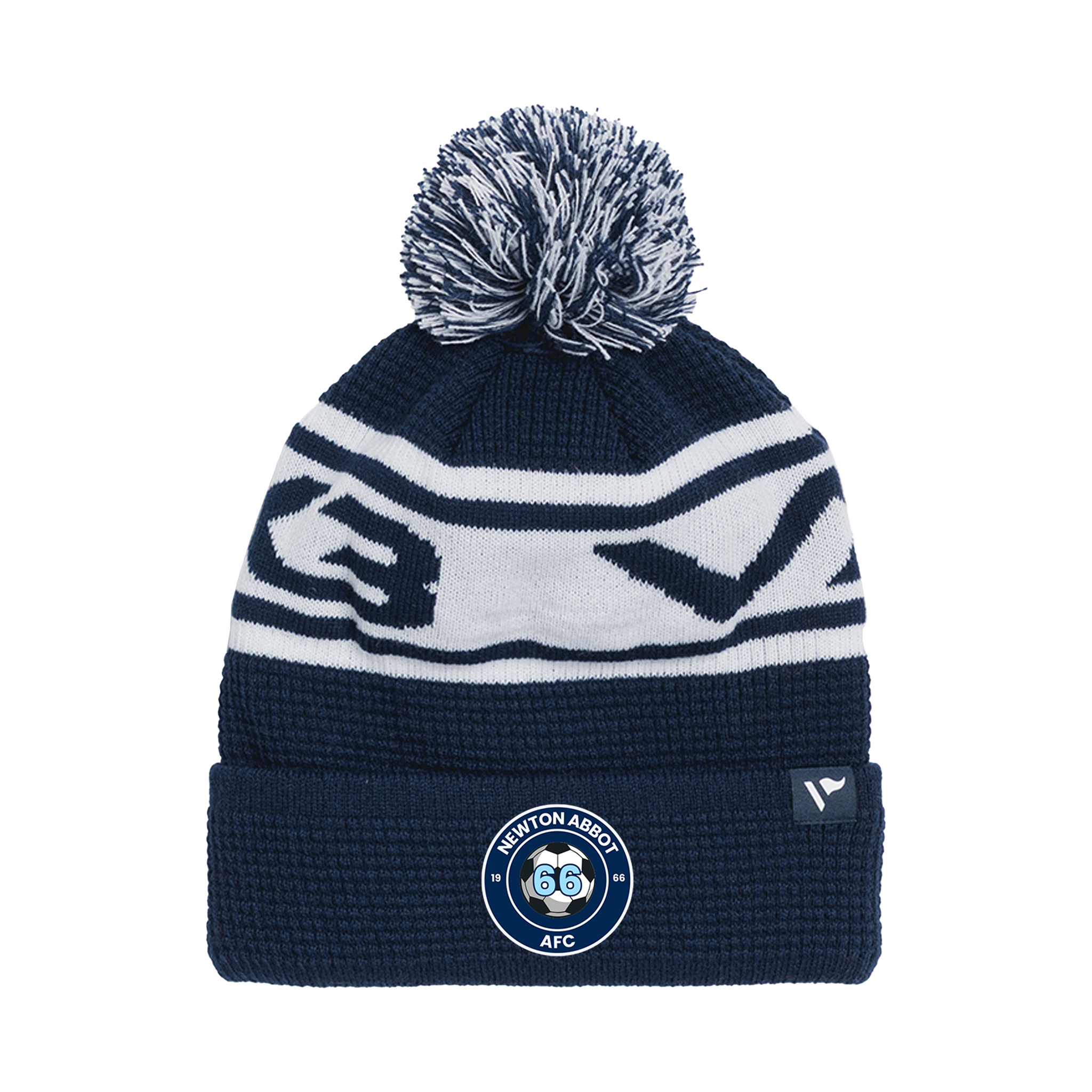 Newton Abbot 66 Waffle Knit Bobble Hat - Navy/White